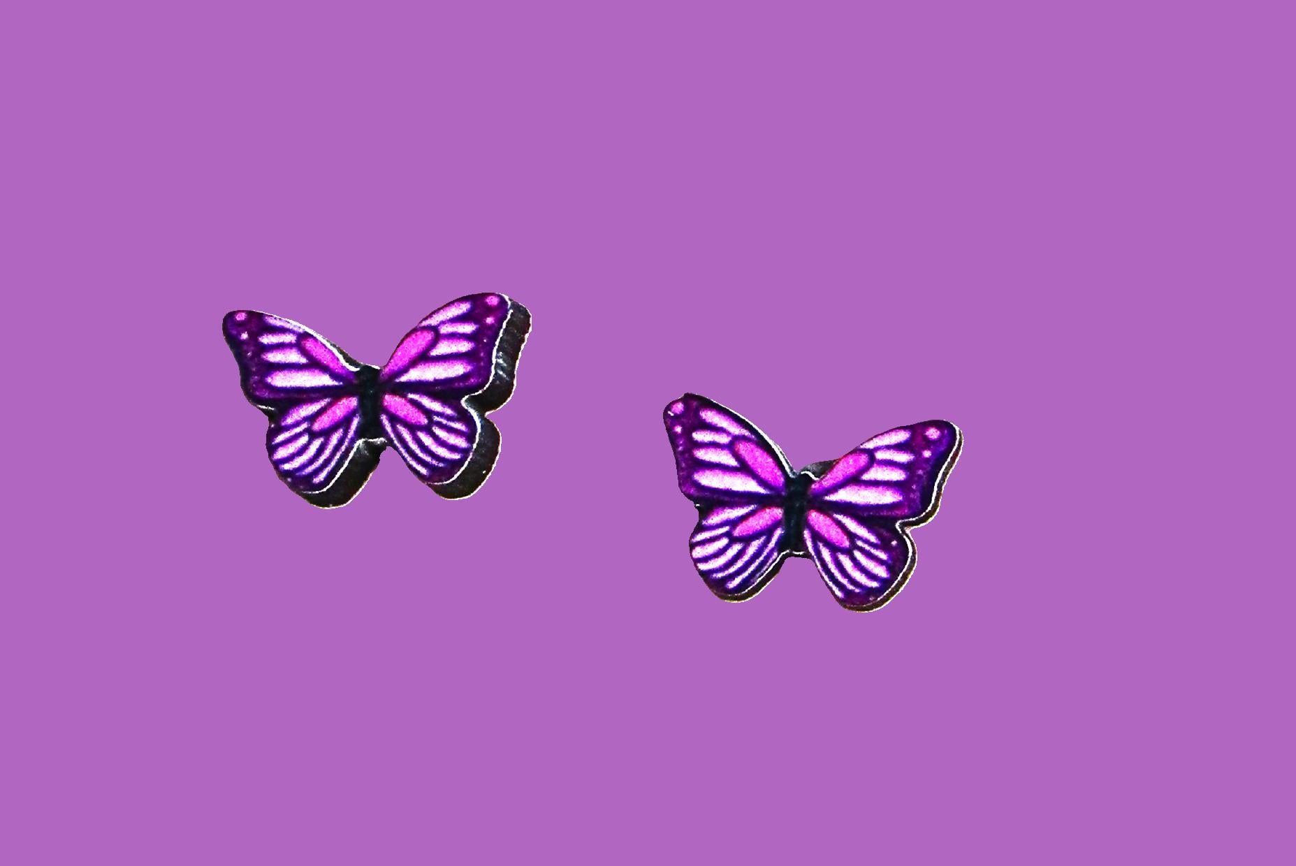 Add a splash of whimsical charm with these butterfly-shaped stud earrings! Crafted from smooth MDF, they feature a hypoallergenic design that’s gentle on sensitive ears. The stained glass effect in vibrant purples creates a playful and eye-catching look, perfect for brightening any outfit with a touch of magical color.