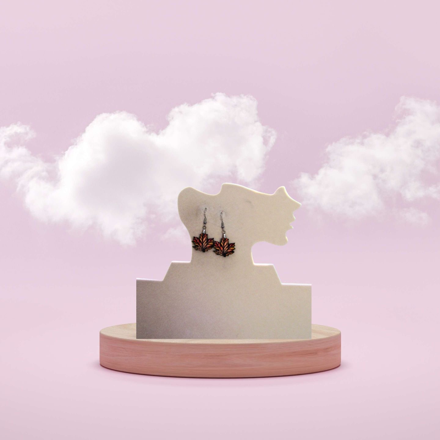 These maple leaf-shaped earrings feature vibrant fall leaf orange designs sublimated on one side, measuring 1 inch with a total length of 2 inches. Crafted from lightweight MDF and paired with hypoallergenic wires, they offer comfortable wear for sensitive ears. Perfect for embracing autumn’s warmth with style and ease.