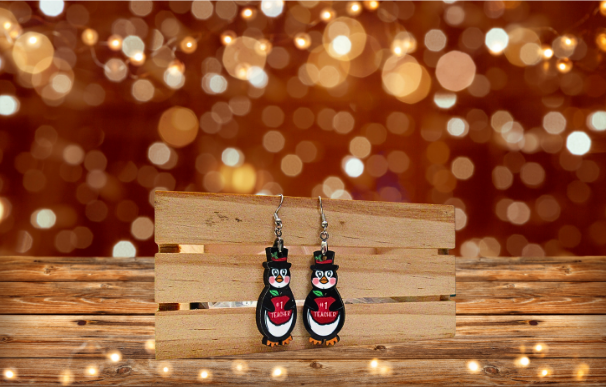 MDF-Penguin Shaped Sublimated Earrings 1.5 inch Teacher