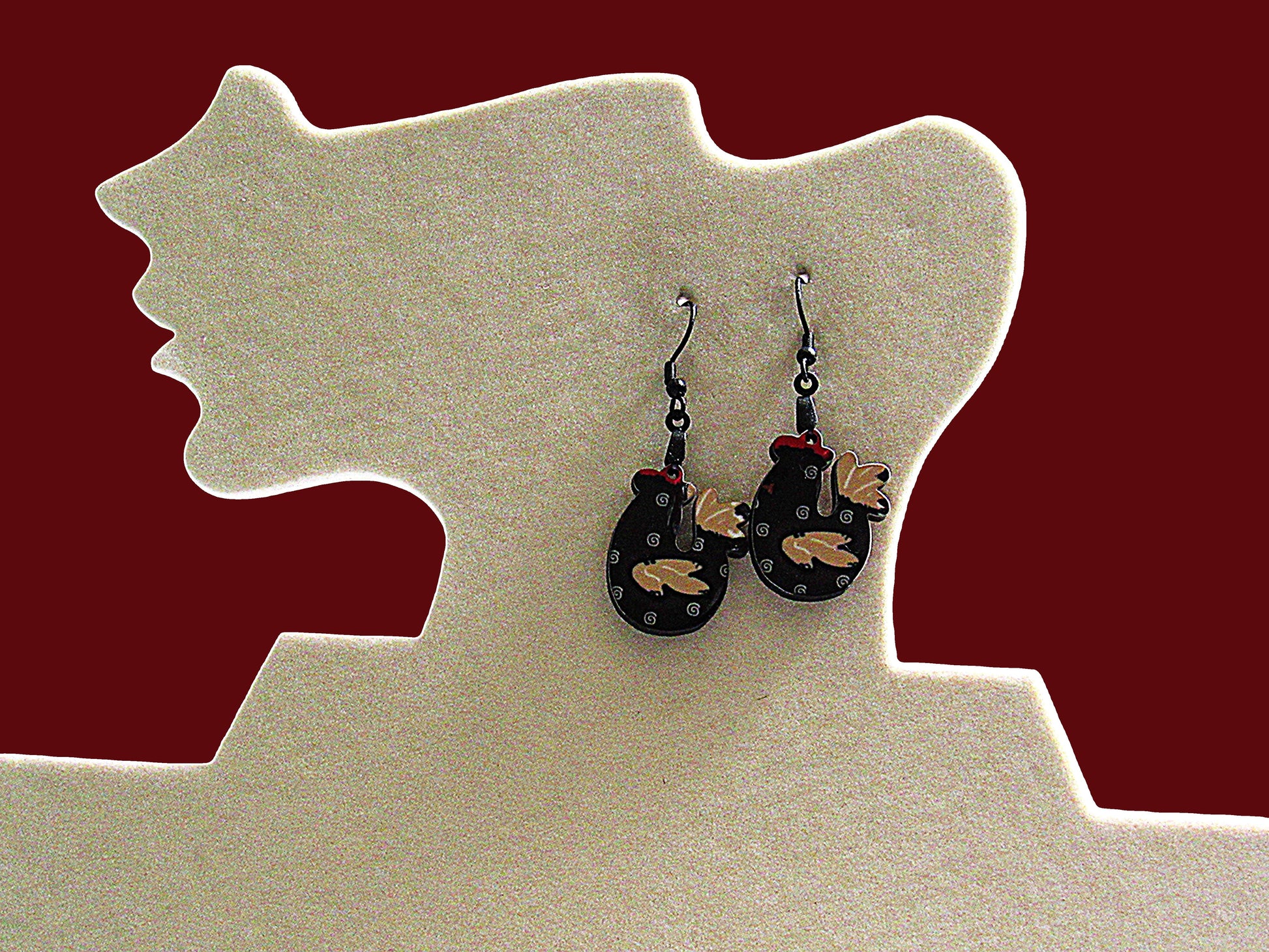 These playful chicken-shaped earrings feature a sturdy 1-inch MDF base with a total length of 2 inches, making them a fun and lightweight accessory. Crafted with hypoallergenic wire, they’re perfect for sensitive ears and add a quirky touch to any outfit.