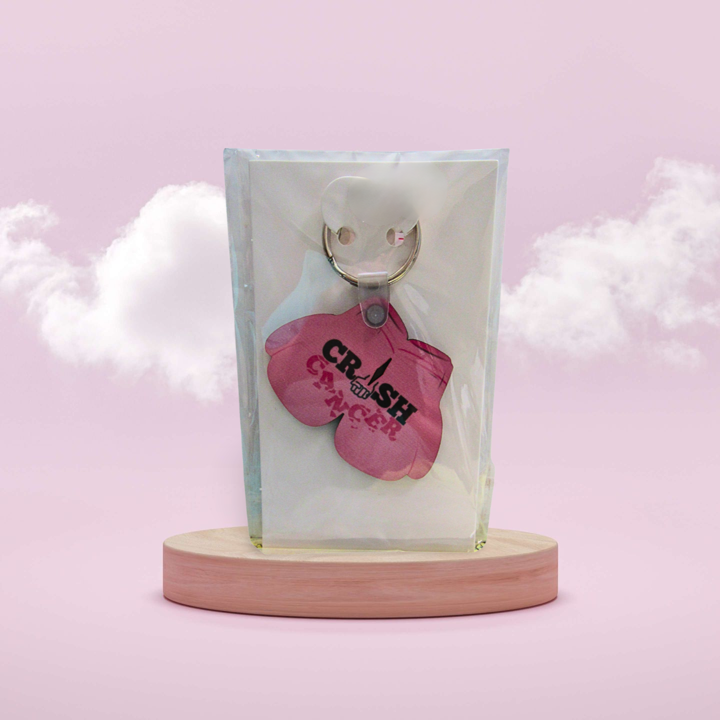 Raise awareness in style with this unique boxing glove-shaped breast cancer keychain. Show your support for the cause with this beautifully sublimated accessory.$1.50 from sale will be donated to breast cancer research.