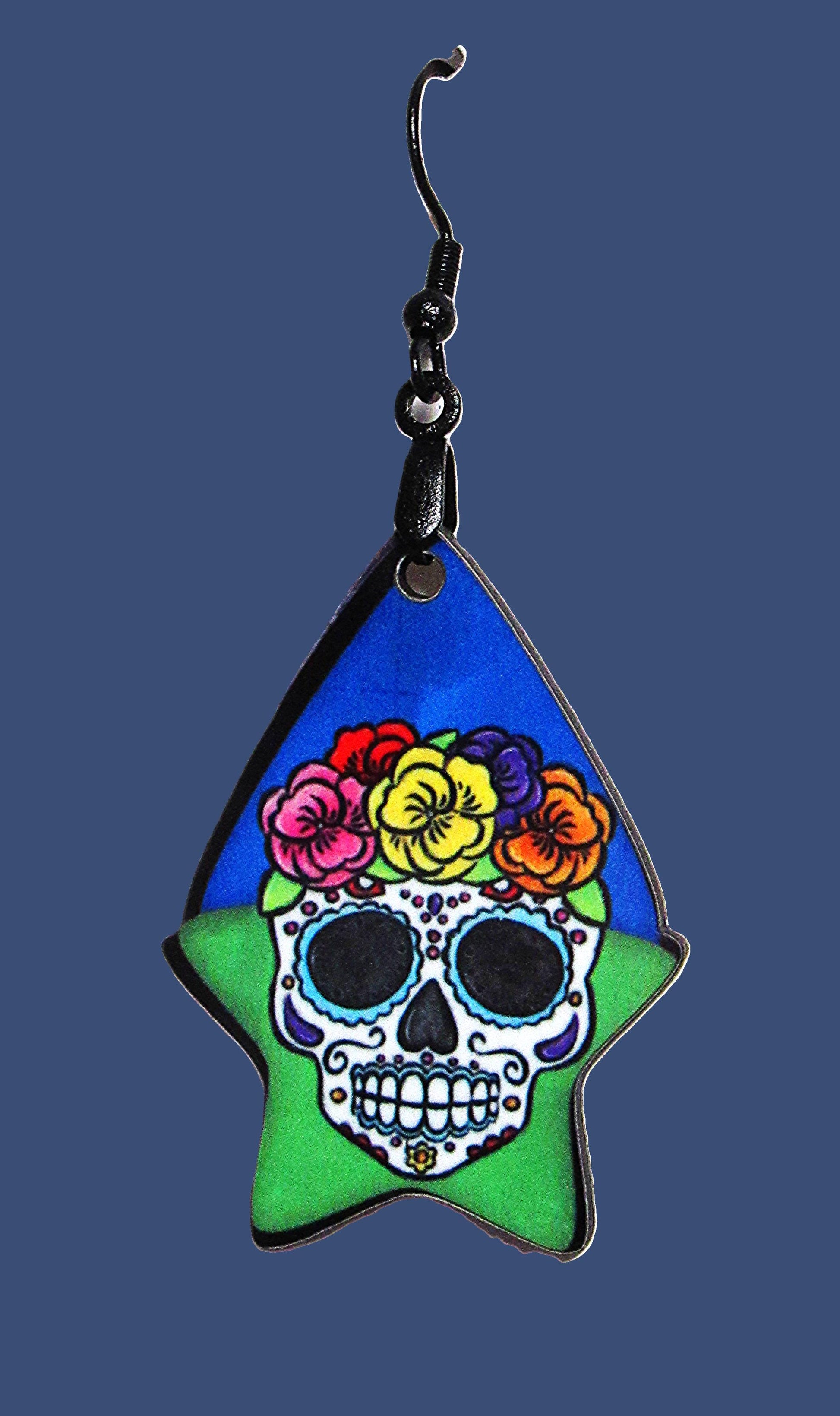Add a splash of fun to your look with these Teardrop Star Shaped Earrings! Crafted from sturdy MDF with a 1.5-inch base and a total length of 2.5 inches, they’re lightweight and comfy. Featuring hypoallergenic wire, they’re perfect for sensitive ears. Celebrate the vibrant Day of the Dead spirit with these playful, eye-catching accessories that brighten any outfit.