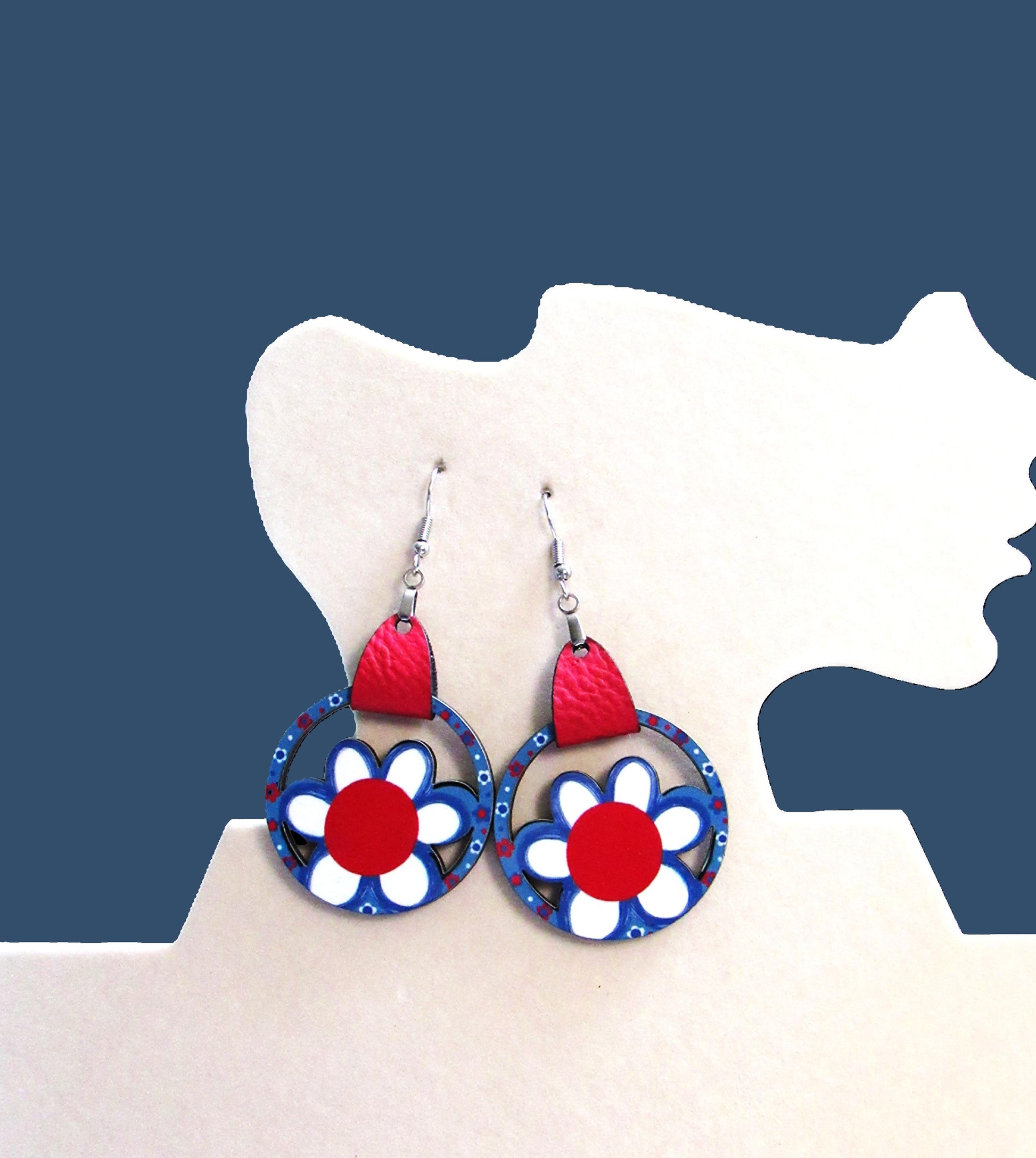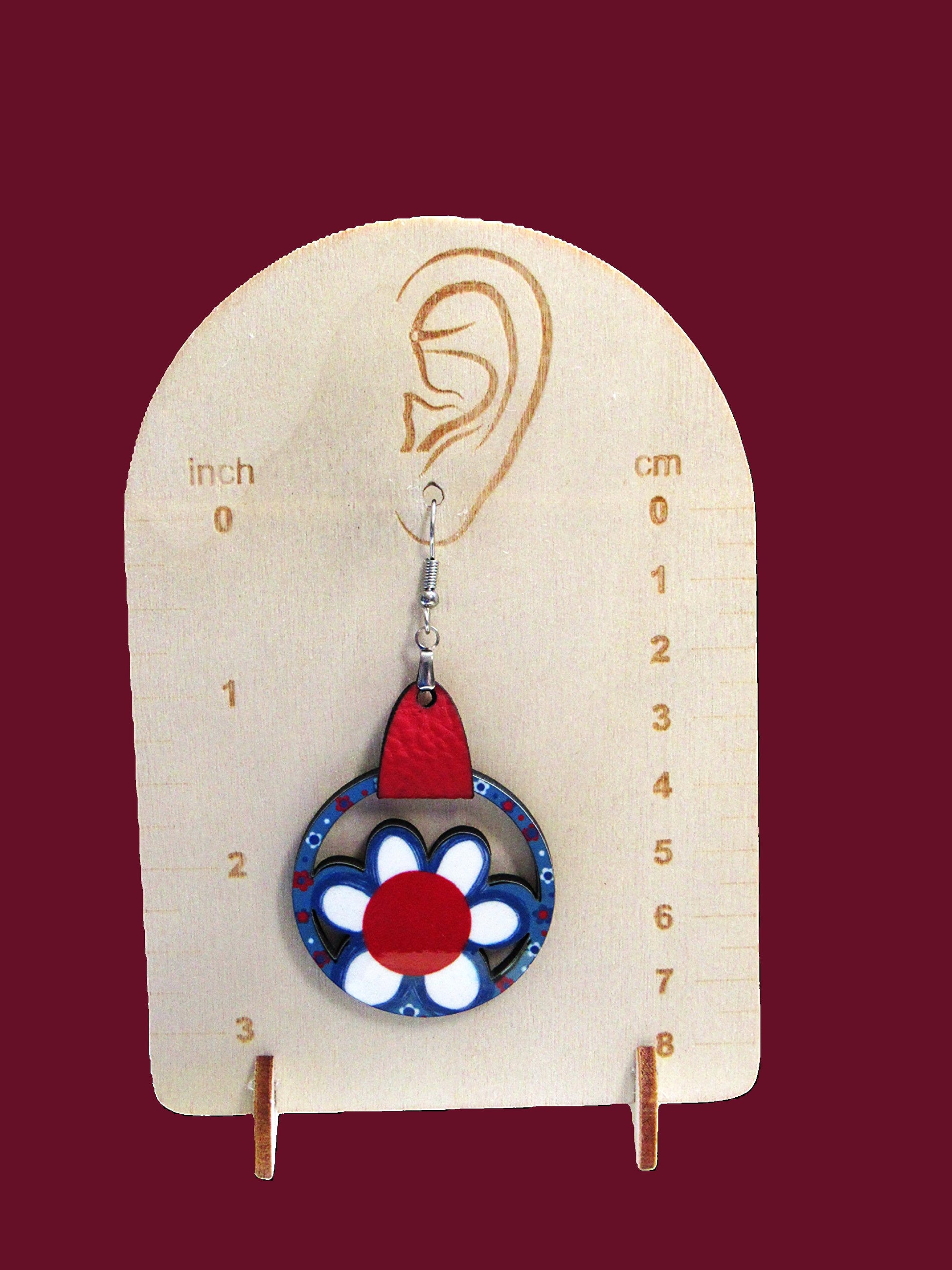 The Round Flower Shaped Sublimated Earrings offer a 1.5-inch base with a total length of 2.75 inches, blending delicate style with lasting comfort. Made from sturdy MDF and featuring a faux leather strap, these earrings are lightweight and breathable. The hypoallergenic wire ensures they are safe for sensitive ears, allowing you to enjoy a beautiful accessory without irritation.