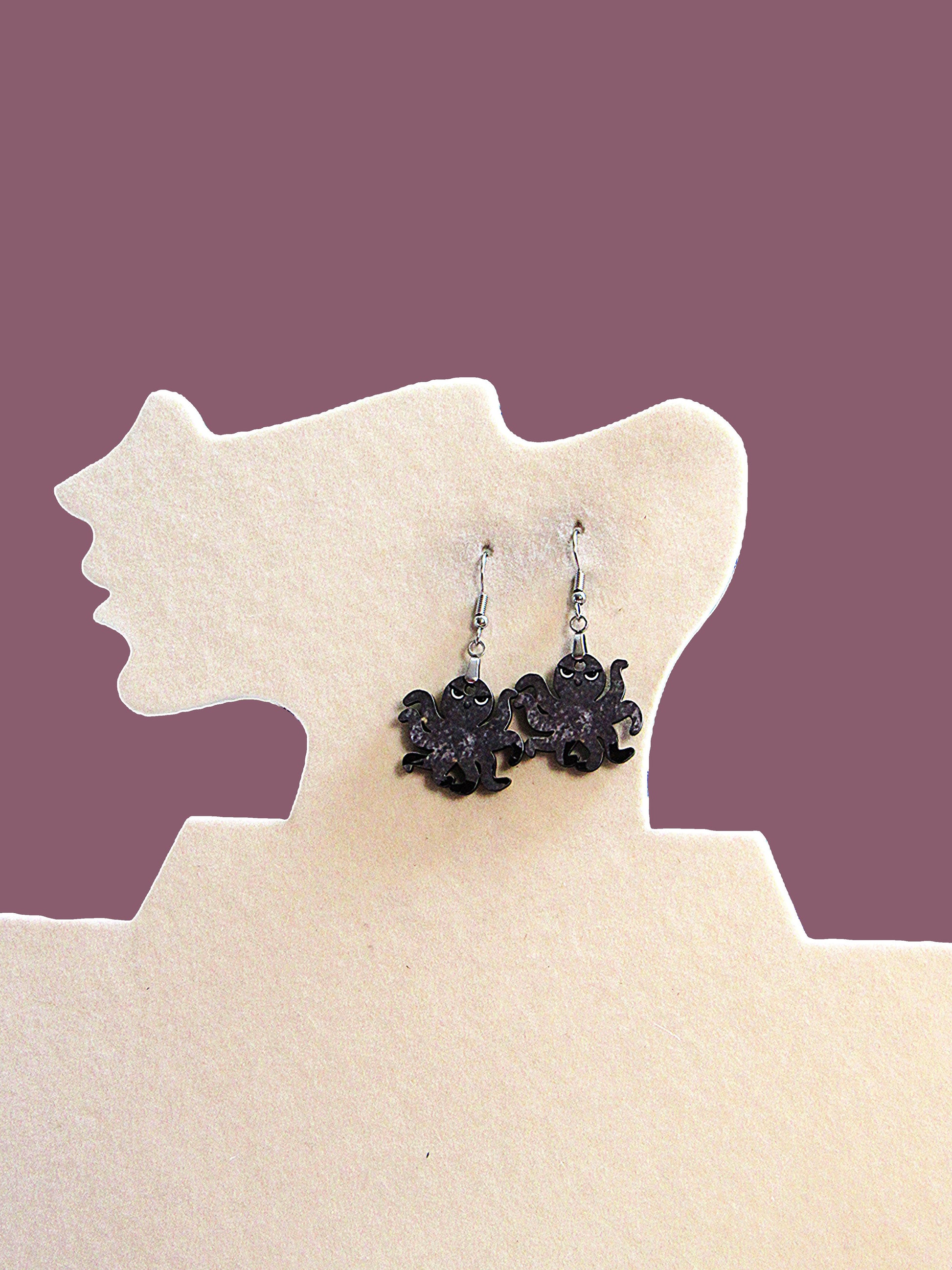 These Octopus Shaped Sublimated Earrings feature a 1-inch base crafted from durable MDF and are completed with hypoallergenic wire for comfortable wear. Their compact size makes them a charming and lightweight accessory perfect for everyday use, especially for those with sensitive skin.
