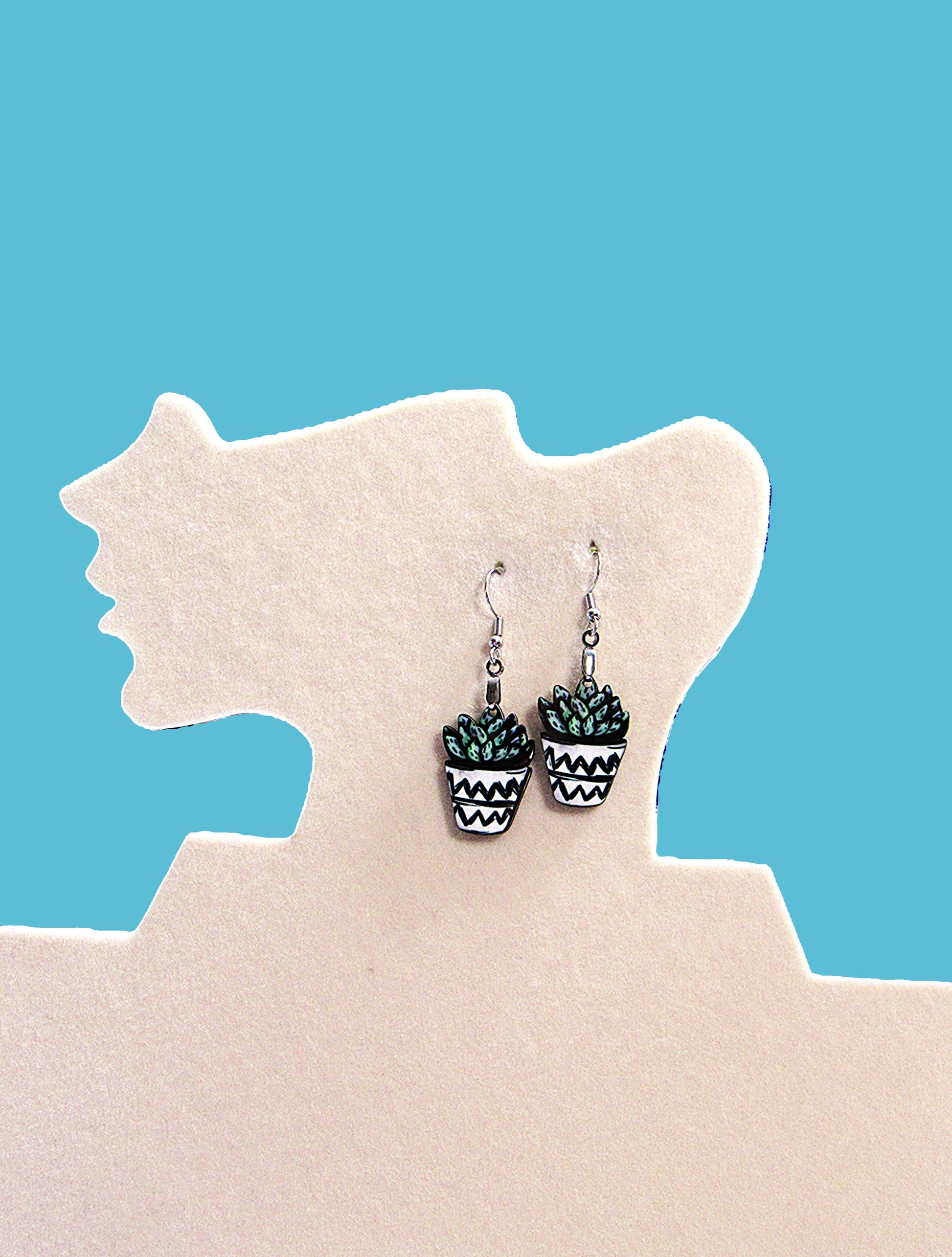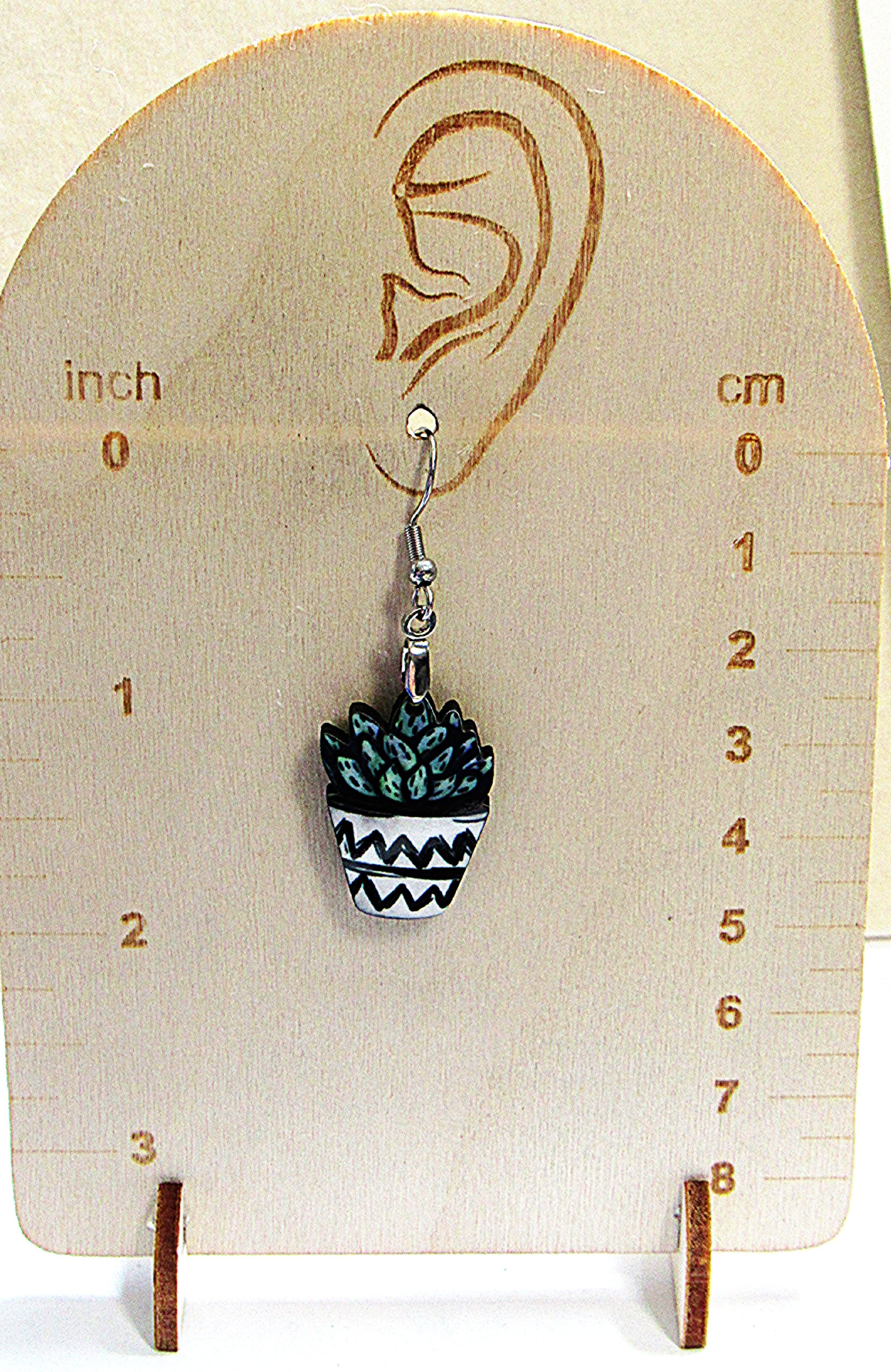 These succulent-shaped earrings bring a playful touch to your look with their charming design. Crafted from lightweight MDF and featuring hypoallergenic wire, they ensure comfort for sensitive ears. Measuring 1 inch at the base and 2 inches in total length, they’re the perfect size to add a fun, fresh vibe to any outfit.