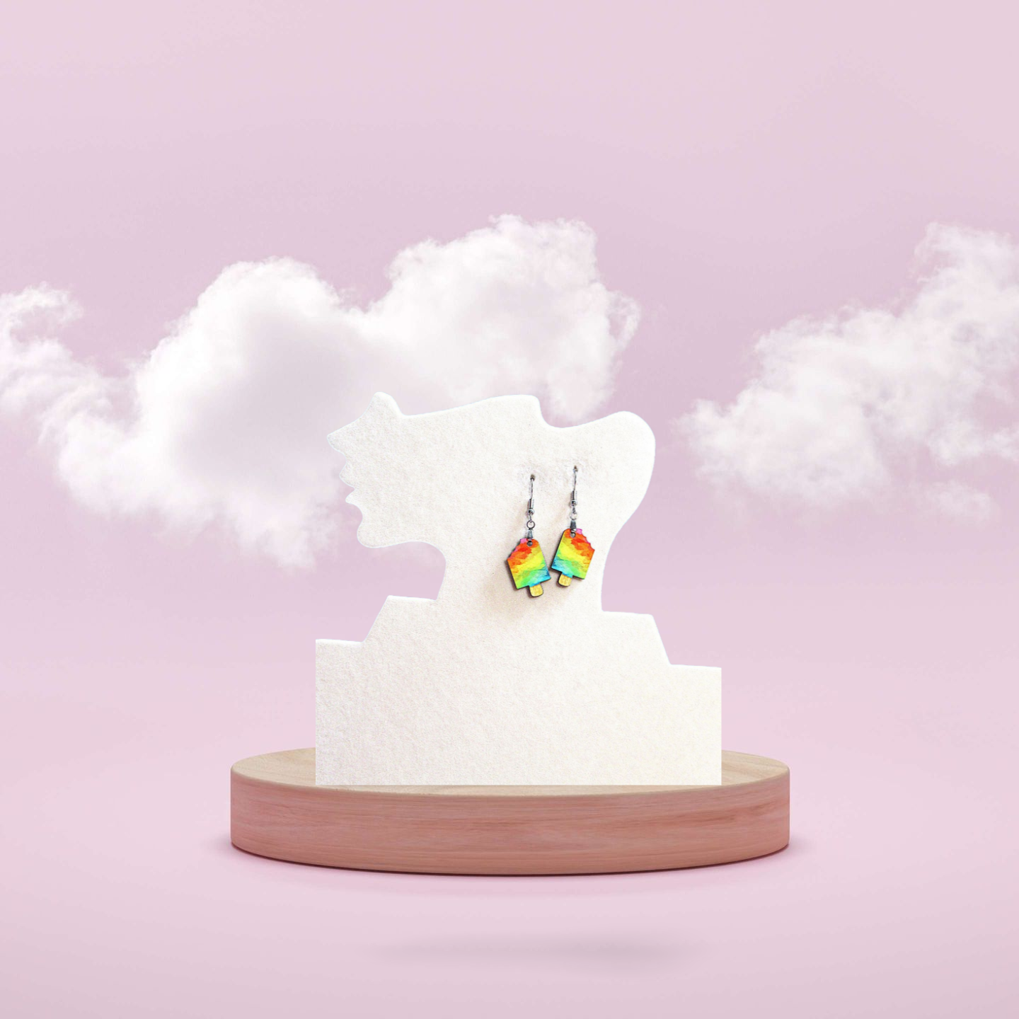 These playful popsicle-shaped earrings bring a splash of fun to any outfit. Crafted from lightweight MDF with a 1-inch base and a total length of 2 inches, they’re easy to wear all day. The hypoallergenic wire ensures comfort for sensitive ears, making these earrings a sweet treat you’ll want to show off!