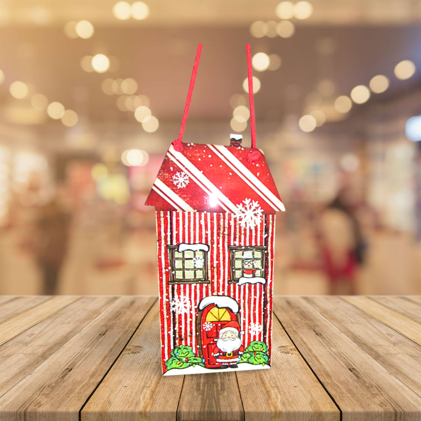 Bring festive cheer to your door with this Primitive House Shaped Sublimated Door Hanger. Measuring 5.75 x 10 inches, it features a charming "Santa" design sublimated on one side. Finished with a cotton rope and wooden beads for easy hanging, this playful decoration adds a cozy holiday touch to your home.