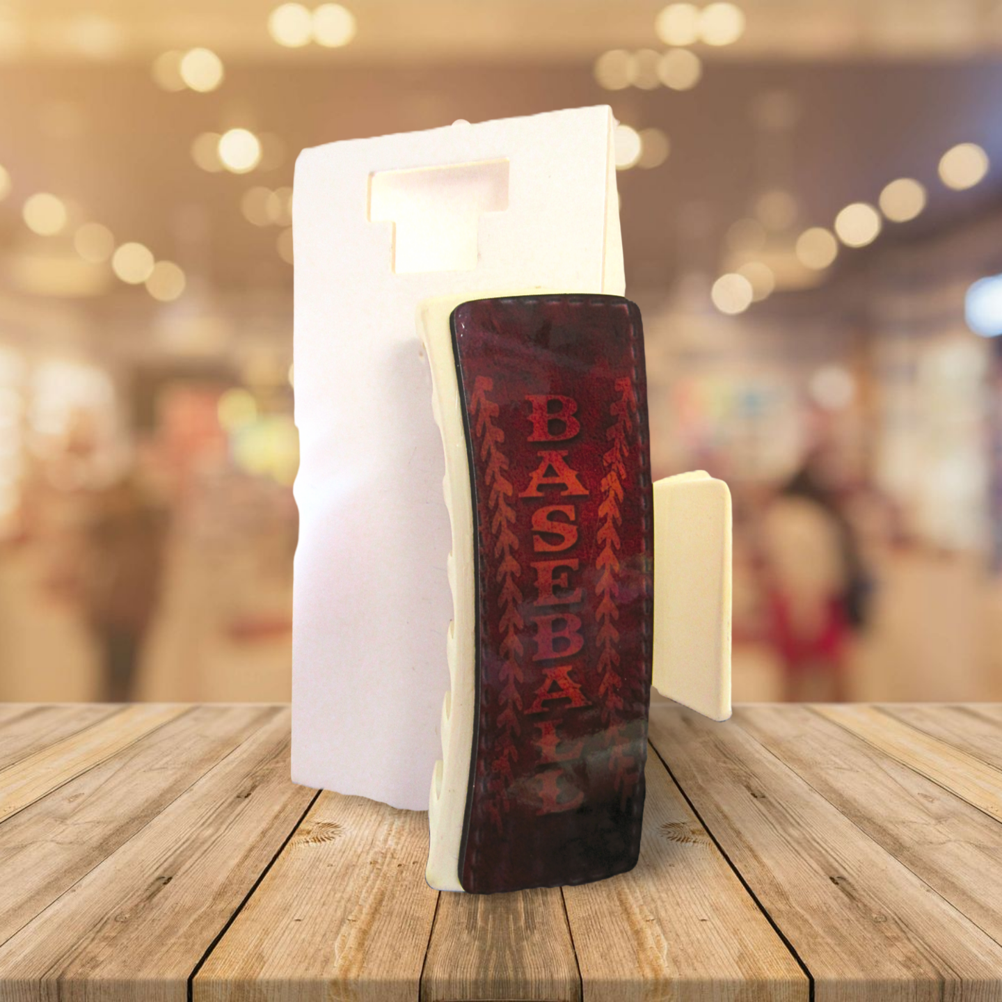 This playful baseball-themed hair clip combines durability and style with its sturdy plastic, alloy, and MDF construction. Featuring a strong metal spring and interlocking teeth, it holds your hair securely through every game or adventure. At about 4.1 inches, its leather-look finish adds a sporty edge to your everyday look. Perfect for fans who want to keep hair in place while showing off their love for the game!