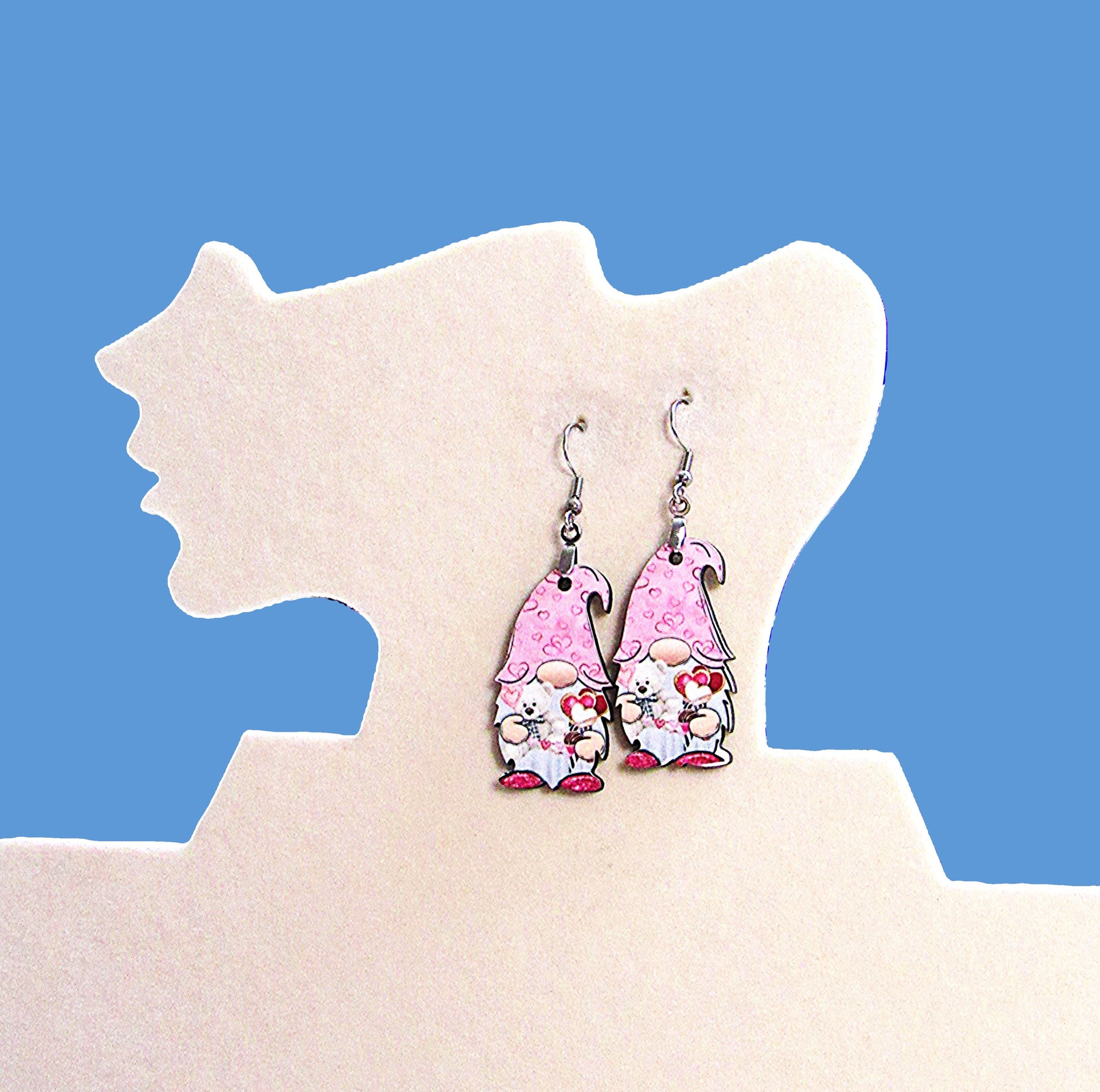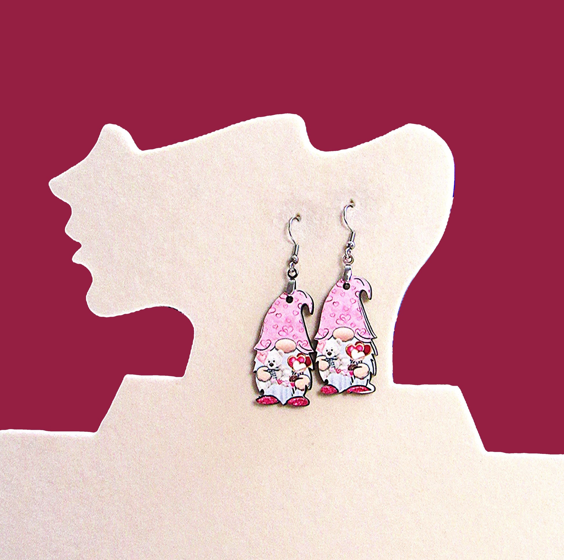 Add a whimsical touch to your look with these gnome-shaped earrings! Crafted from sturdy MDF with a 1.5-inch base and a total length of 2.5 inches, they’re lightweight and comfortable. The hypoallergenic wire ensures they’re gentle on sensitive ears, making them perfect for all-day wear. Embrace your playful side with these charming accessories!