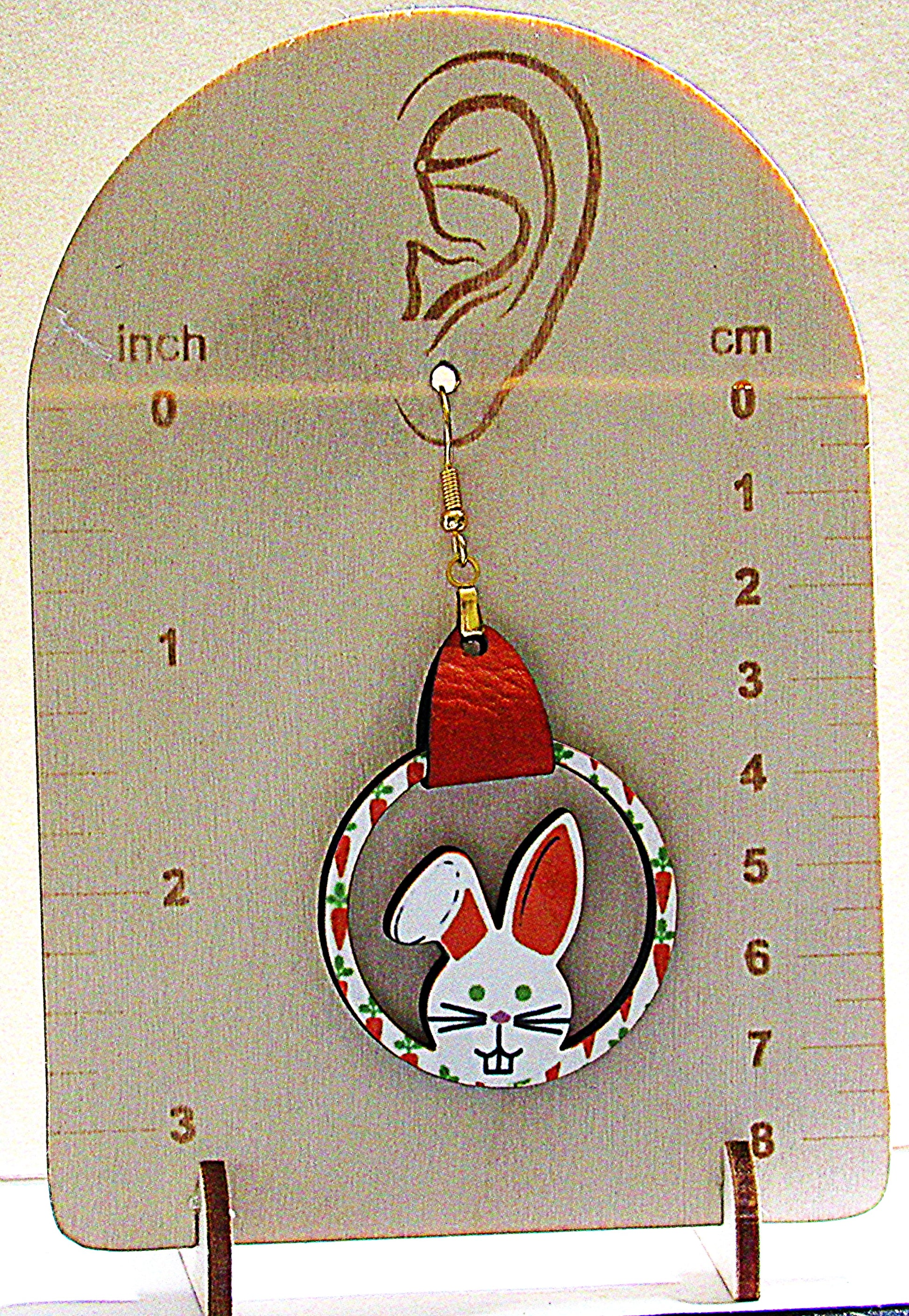 Faux Leather Bunny Round Shaped Sublimated Earrings