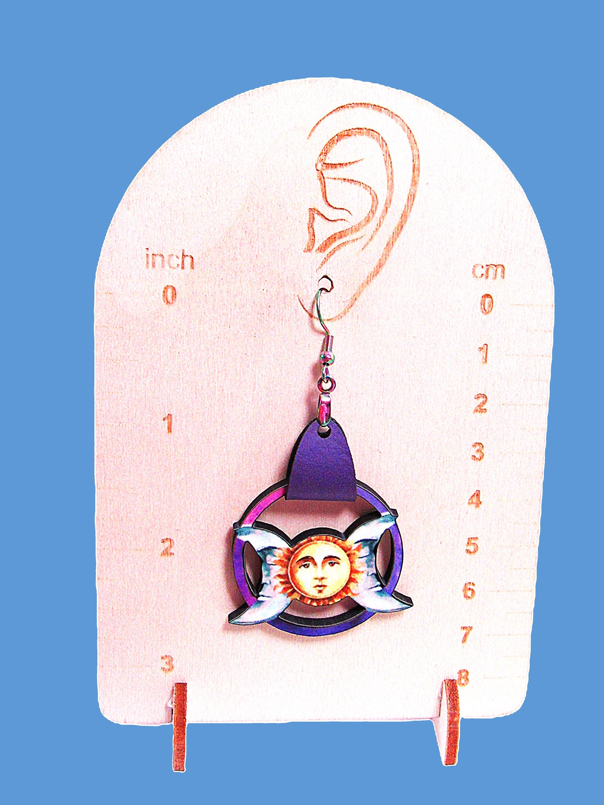 Add a touch of cosmic charm to your look with these Celestial Shaped Sublimated Earrings. Crafted from lightweight MDF and featuring a hypoallergenic wire, they’re gentle on sensitive ears. The faux leather strap adds a fun, textured detail while keeping the design comfortable and stylish. Measuring 1.5 inches at the base and 2.75 inches in total length, these earrings are the perfect playful accessory to brighten your day.
