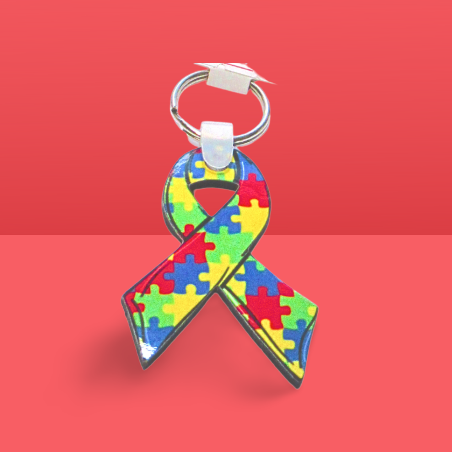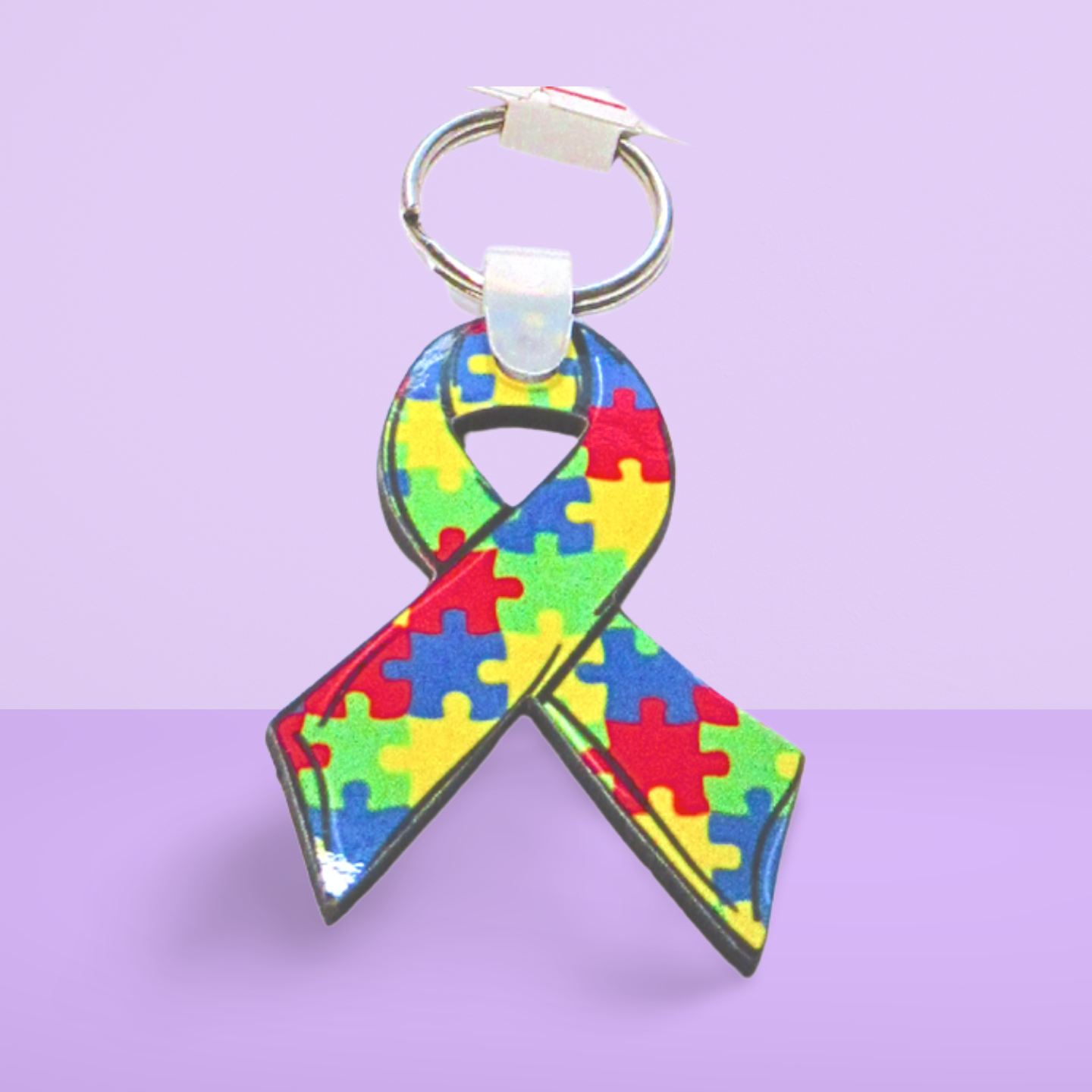 Ribbon Shaped Autism Awareness Sublimated Keychain
