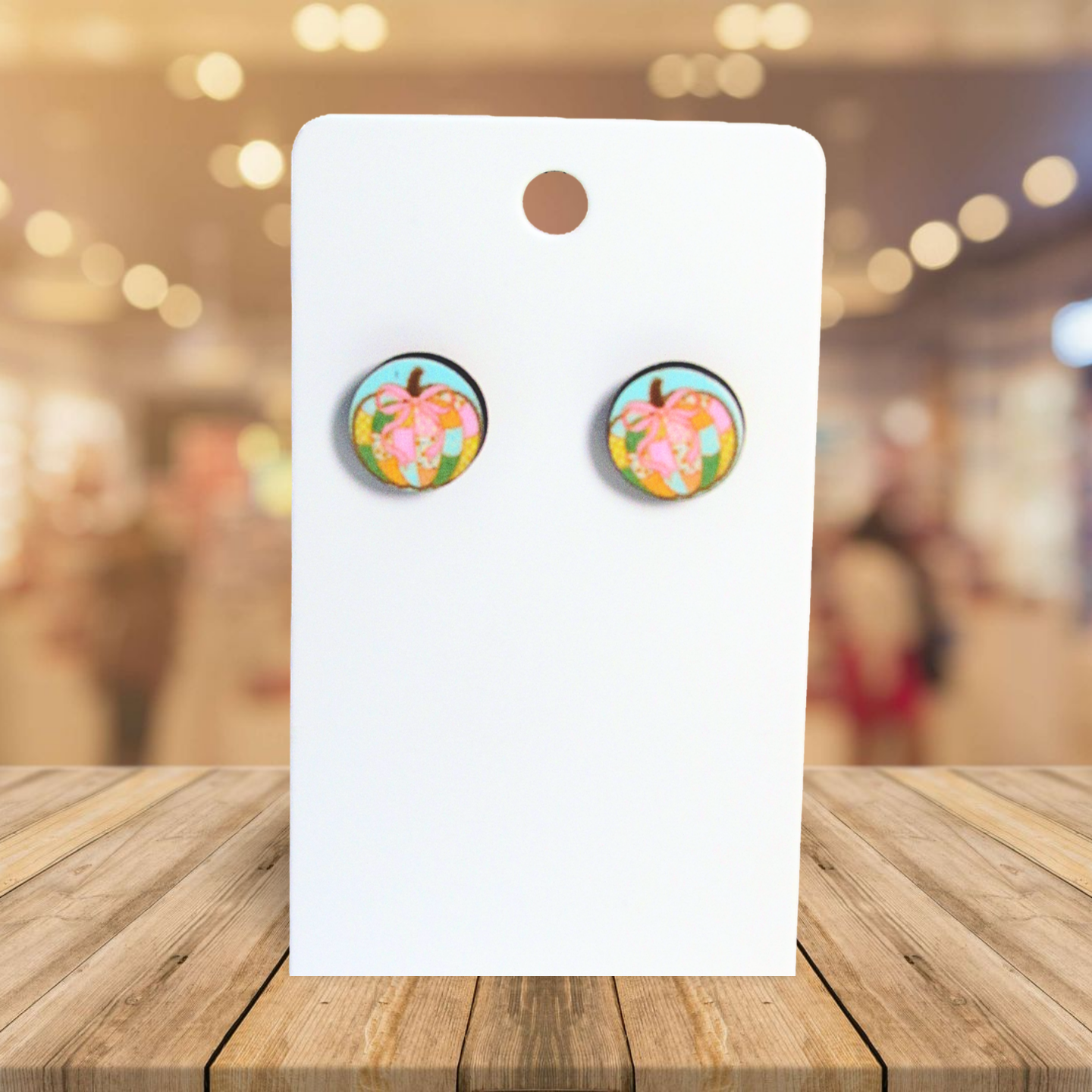 Add a playful pop to your look with these round-shaped stud earrings crafted from lightweight MDF. Featuring an pink pumpkin design, they bring a touch of whimsical charm perfect for any season. Hypoallergenic and comfy for daily wear, these studs are a fun way to brighten your style with a subtle glow.