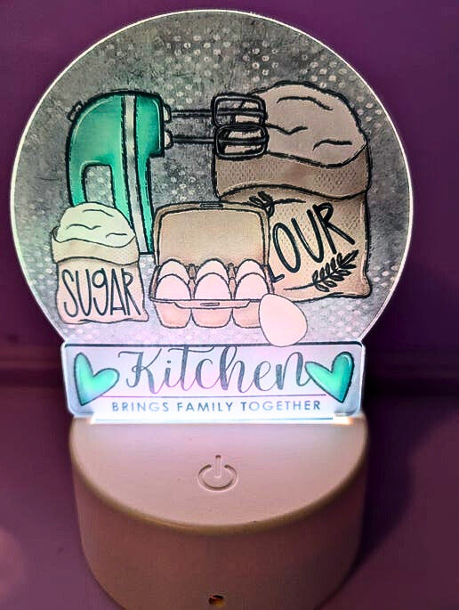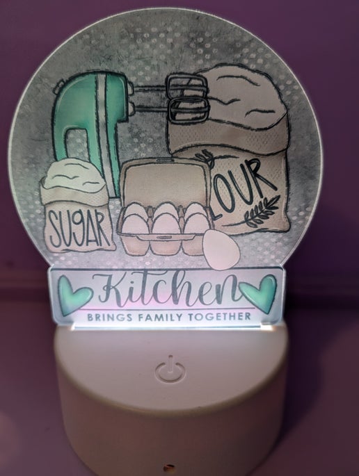 This 4.09x4.64 inch round acrylic light features vibrant sublimation on one side, creating a beautiful illuminated display when paired with a light base or used as a wall nightlight. Crafted from durable acrylic, it enhances any space with a subtle glow. Please note the base is sold separately, but you can save with a discount when purchasing both the acrylic piece and base together. Ideal for adding a warm, decorative touch wherever you need soft lighting.