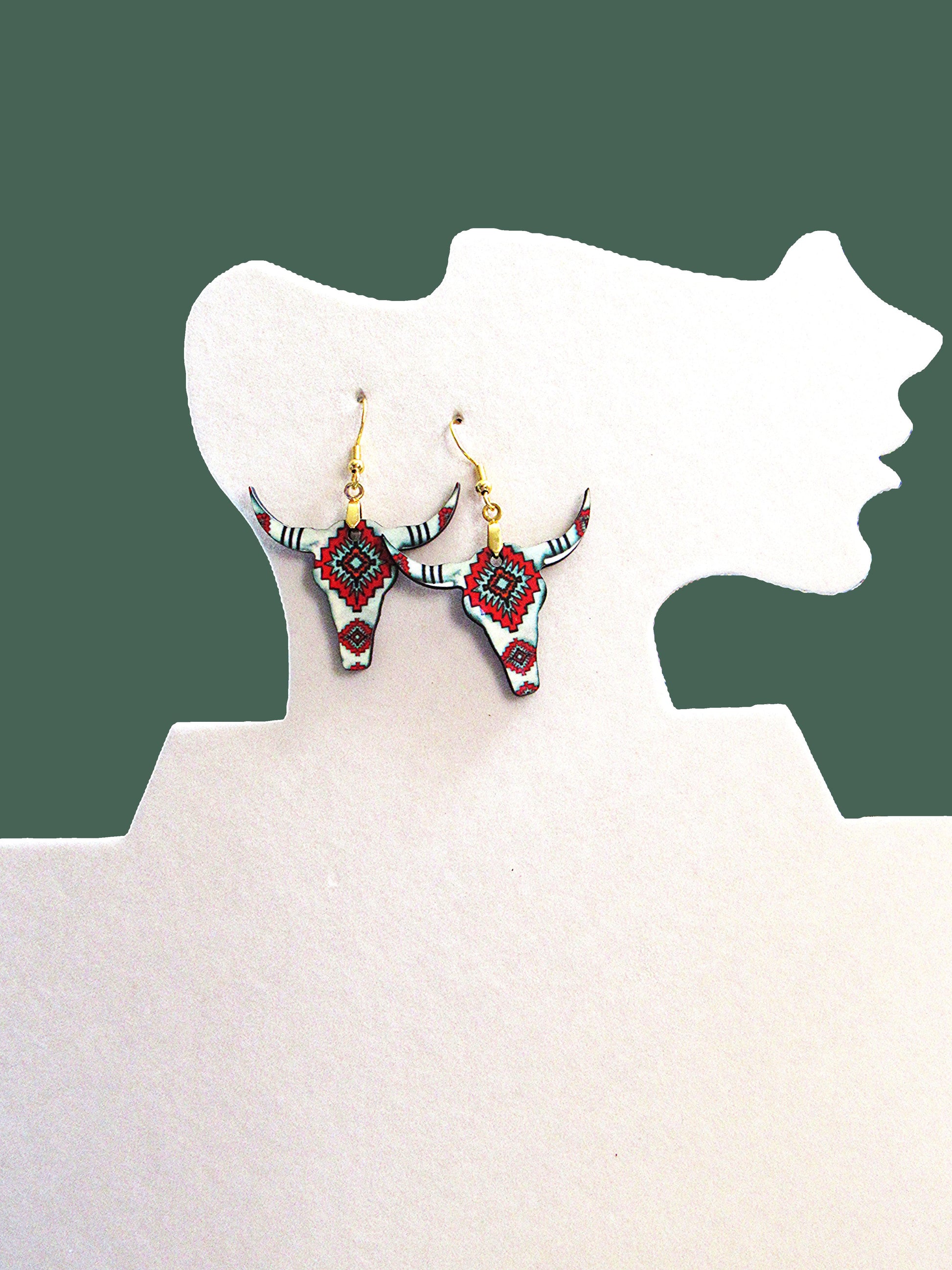 Steer Head Shaped Sublimated Earrings 1.5 inch