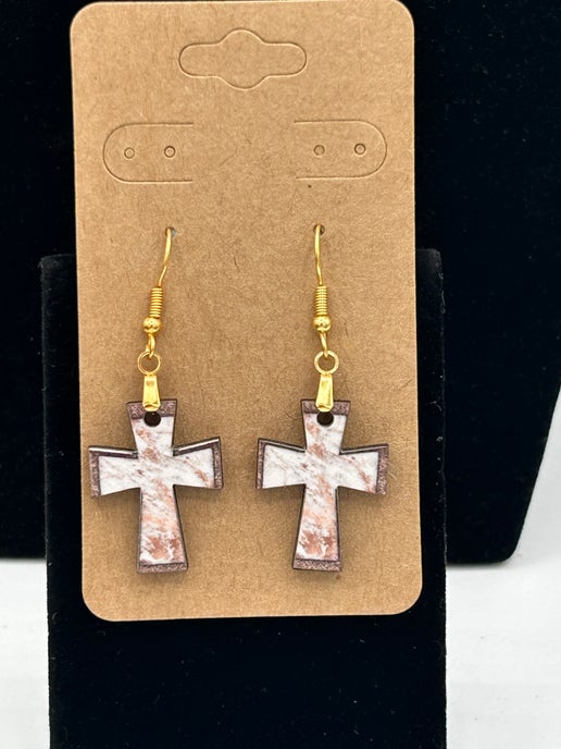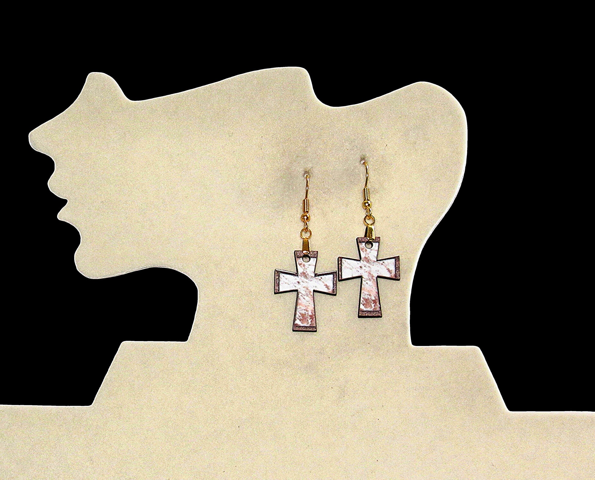These cross-shaped earrings feature a 1-inch MDF base with a total length of 2 inches, crafted for a refined look. The hypoallergenic wire ensures comfortable wear for sensitive skin, combining elegance with thoughtful design. Perfect for adding a subtle yet sophisticated touch to any outfit.