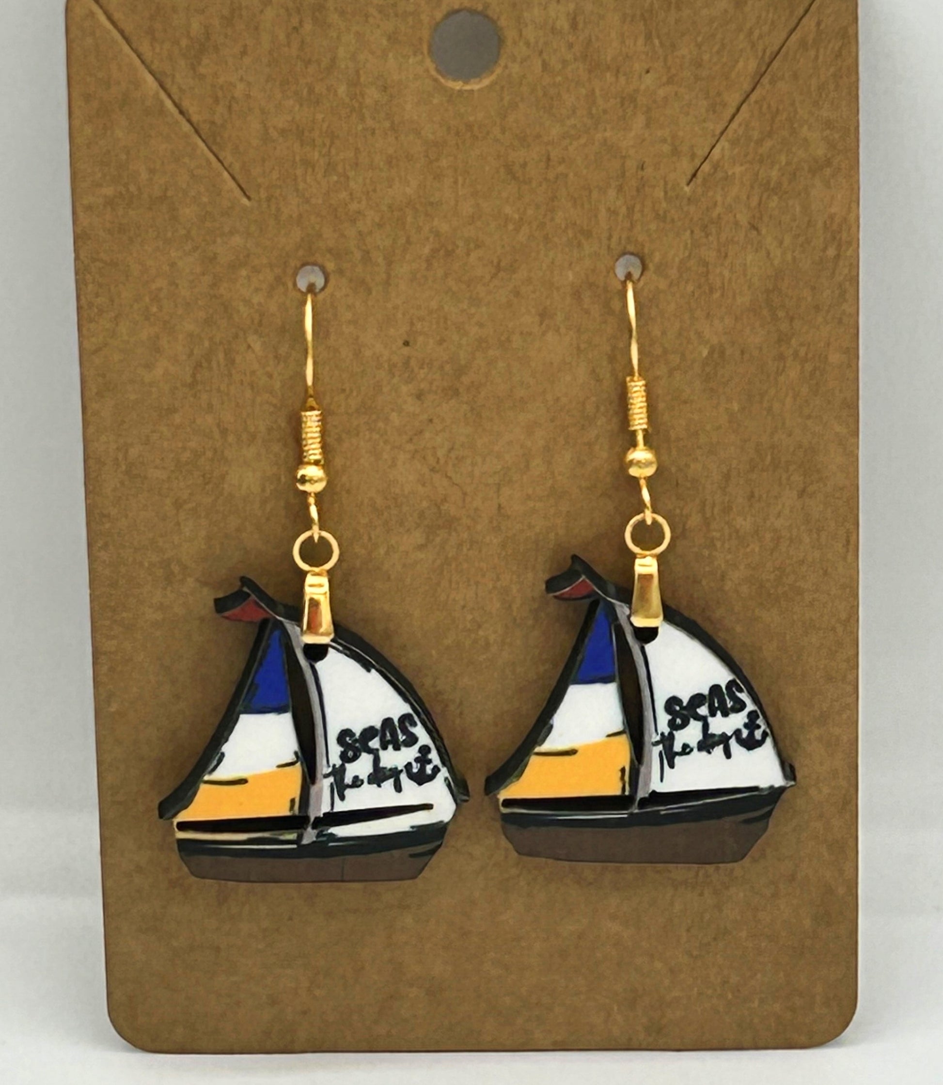 Set sail with these charming sailboat-shaped earrings, perfectly sized at 1 inch for a playful yet subtle statement. Crafted from sturdy MDF and featuring hypoallergenic wire, they’re gentle on sensitive ears while adding a breezy touch to any outfit. Lightweight and fun, these earrings are your new go-to accessory for a splash of nautical whimsy.