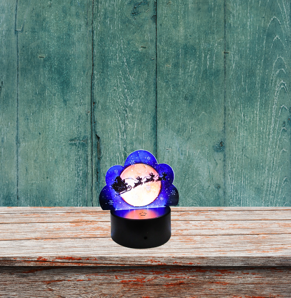 Santa Themed Acrylic Cloud Shaped Sublimated Light Base