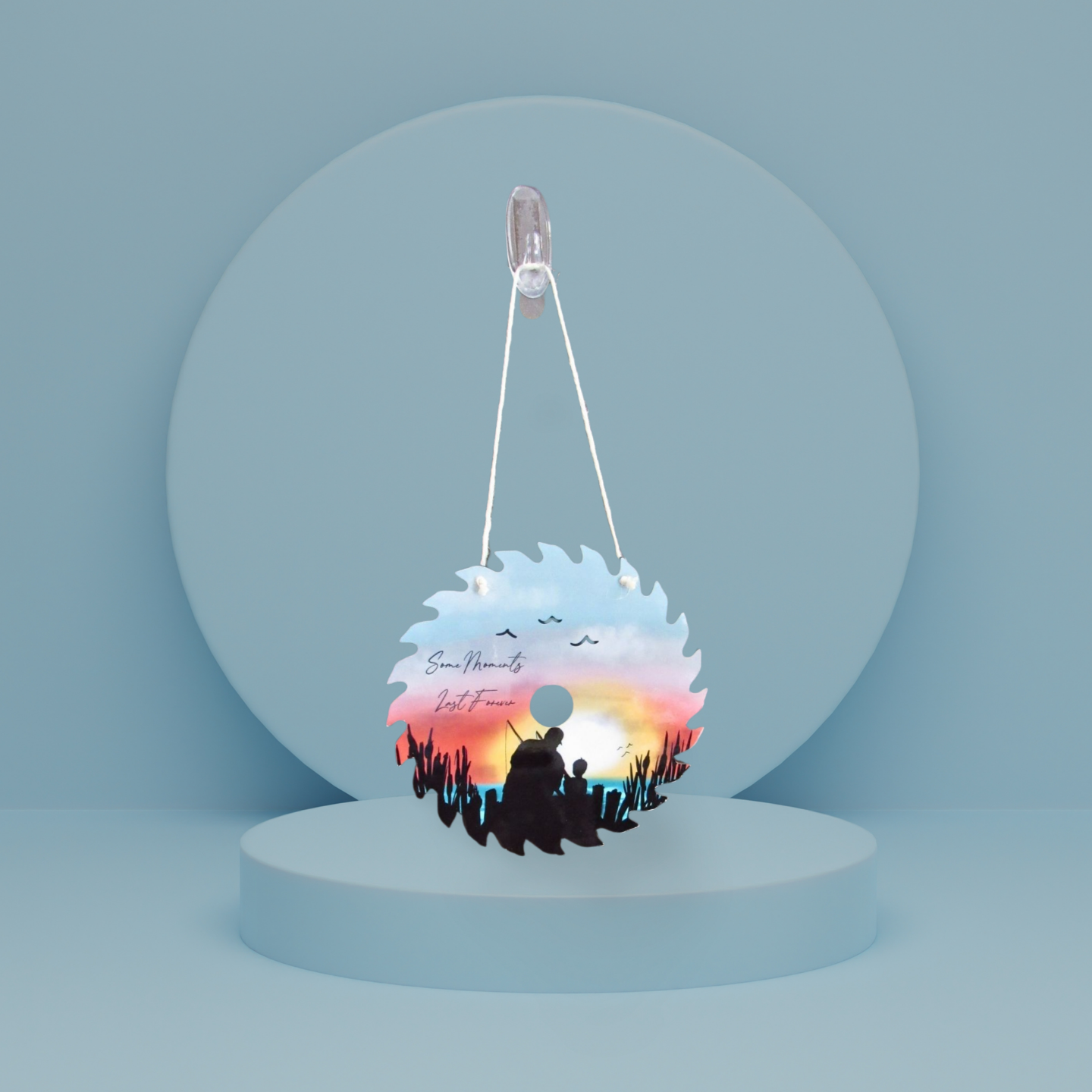 Celebrate special Father and Son fishing memories with this 8-inch MDF door hanger shaped like a sawblade. Its charming fishing theme captures the joy of outdoor bonding, making it a playful and heartfelt addition to any door or wall. Perfect for adding a touch of nostalgia and fun to your space.