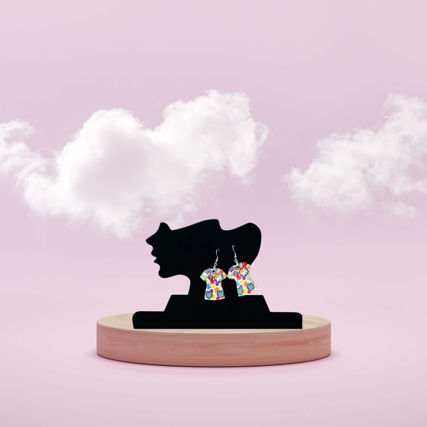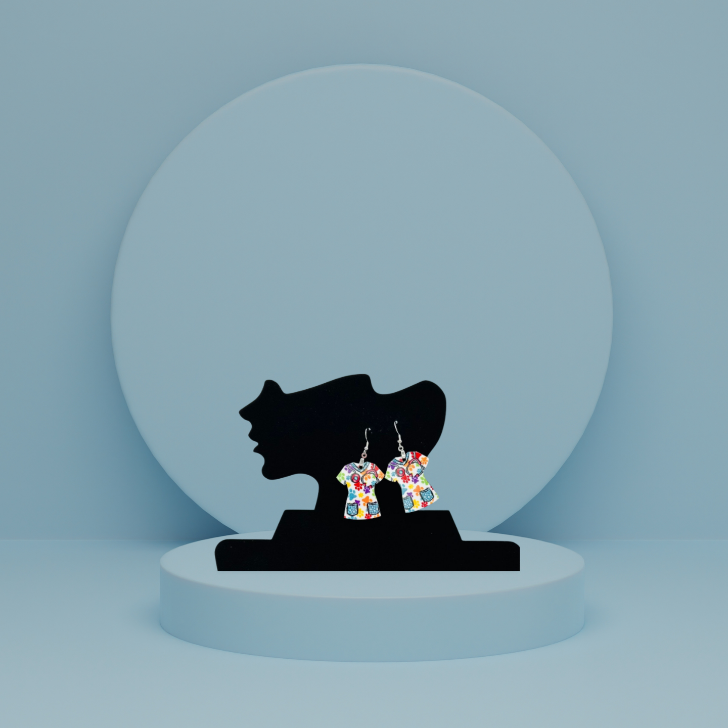 These playful scrub top-shaped earrings bring a fun twist to your look! Crafted from sturdy MDF with a 1.5-inch base and a total length of 2.5 inches, they’re lightweight and comfortable. The hypoallergenic wire ensures they’re gentle on sensitive ears, making them perfect for everyday wear or gifting to your favorite healthcare hero. Add a splash of personality to your style with these charming accessories!