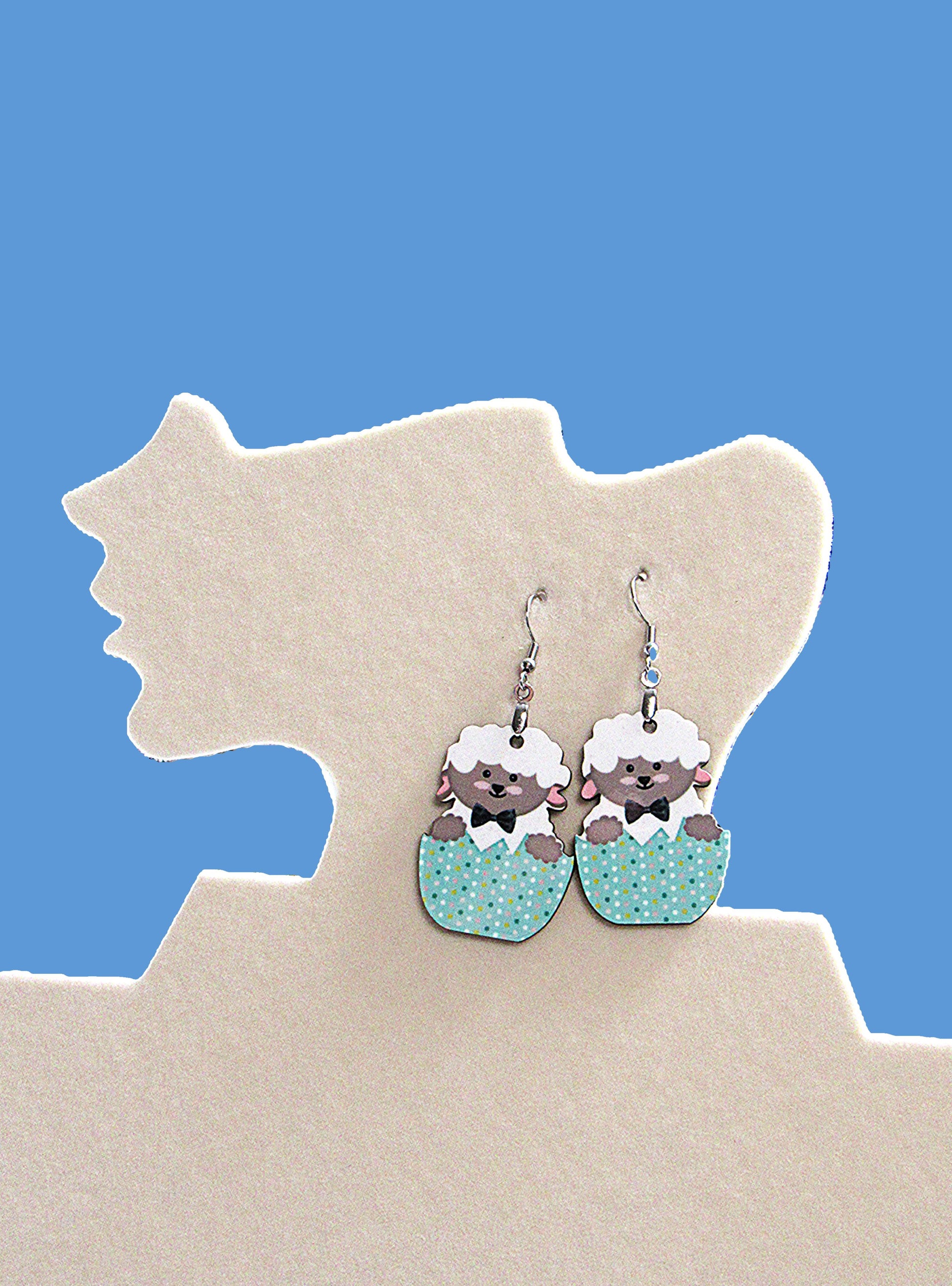 These playful Sheep in an Egg Shaped Sublimated Earrings feature a 1.5-inch base and a total length of 2.5 inches, crafted from lightweight MDF with hypoallergenic wire for comfortable wear. Perfect for adding a quirky touch to any outfit while keeping your ears happy!