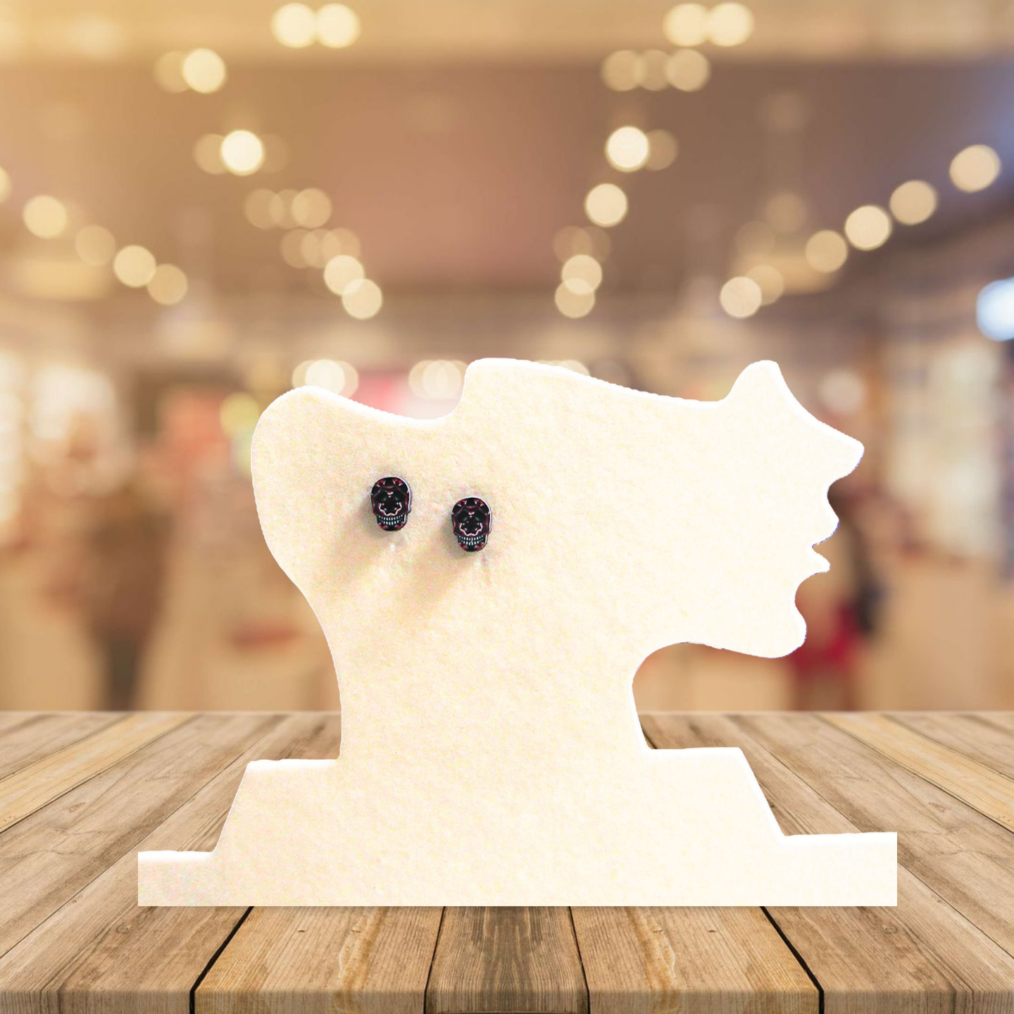 Add a touch of spooky charm with these playful skull-shaped stud earrings. Made from lightweight MDF, each 0.5-inch earring features a vibrant black and red sugar skull design that’s both eye-catching and fun. Hypoallergenic and comfortable, they’re perfect for anyone wanting to celebrate style with a hint of mischief.