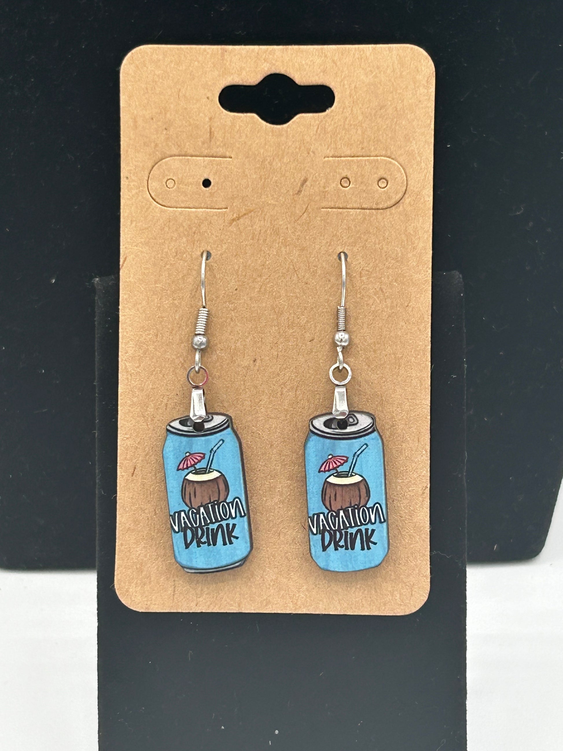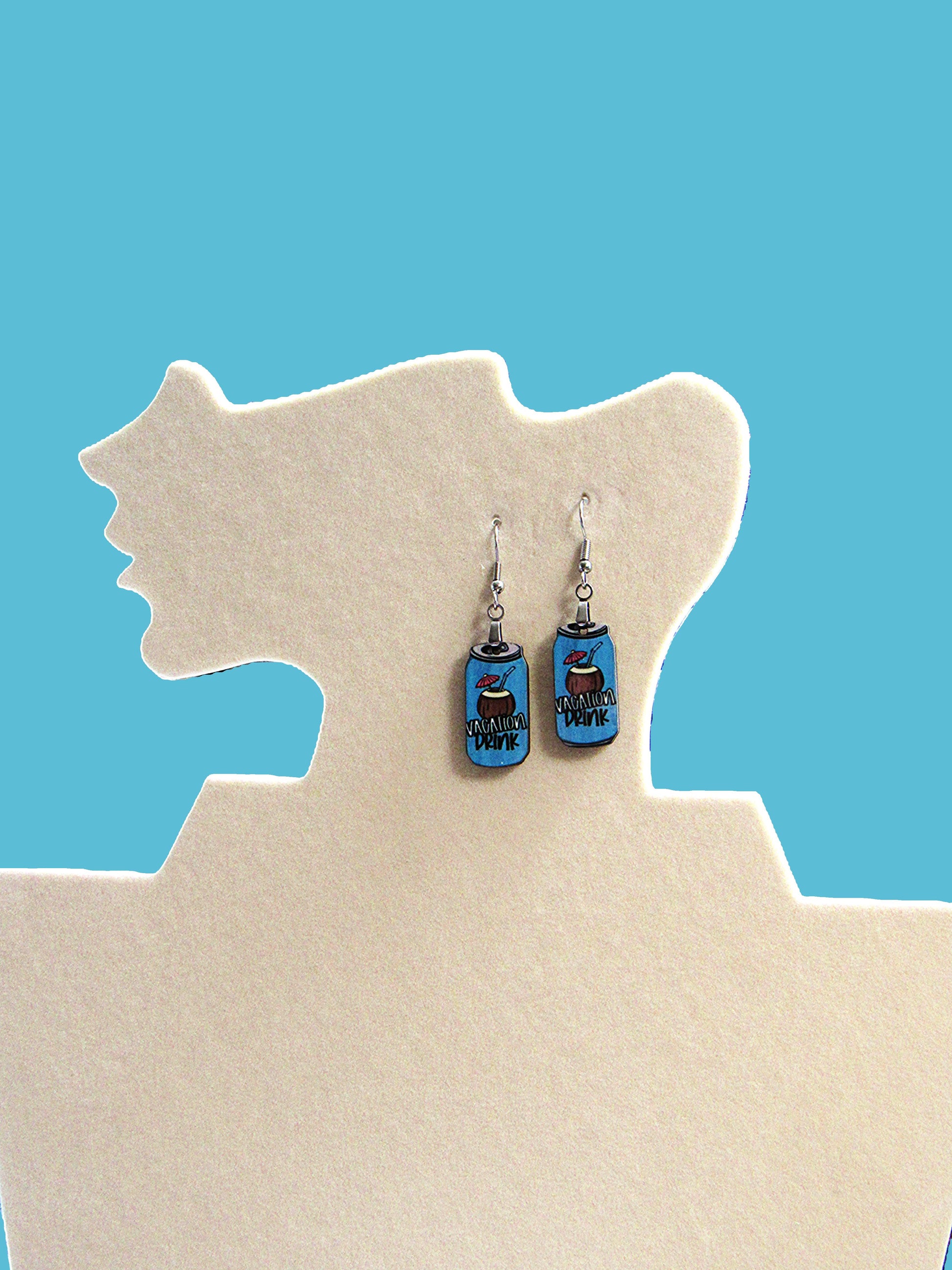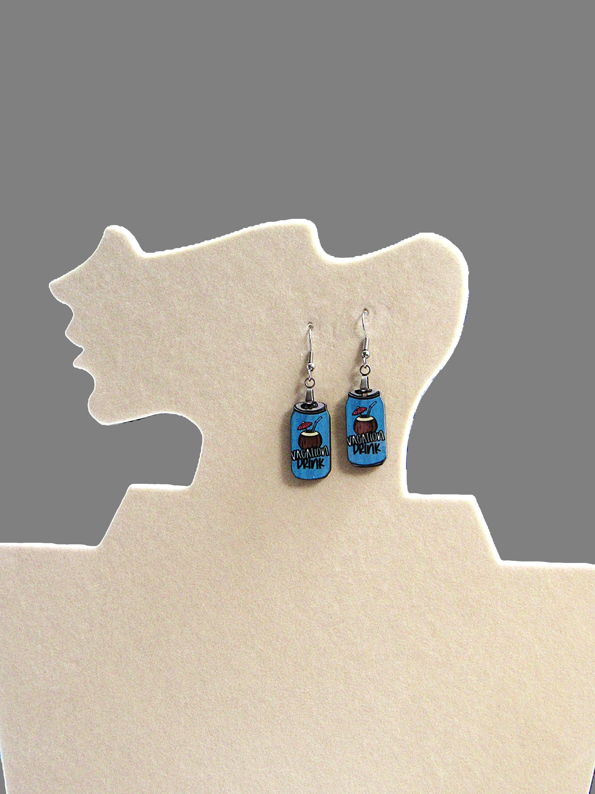 These playful soda can-shaped earrings measure 1 inch in both base and total length, crafted from durable MDF with hypoallergenic wire for comfortable, irritation-free wear. Perfect for adding a fun, quirky touch to any outfit!