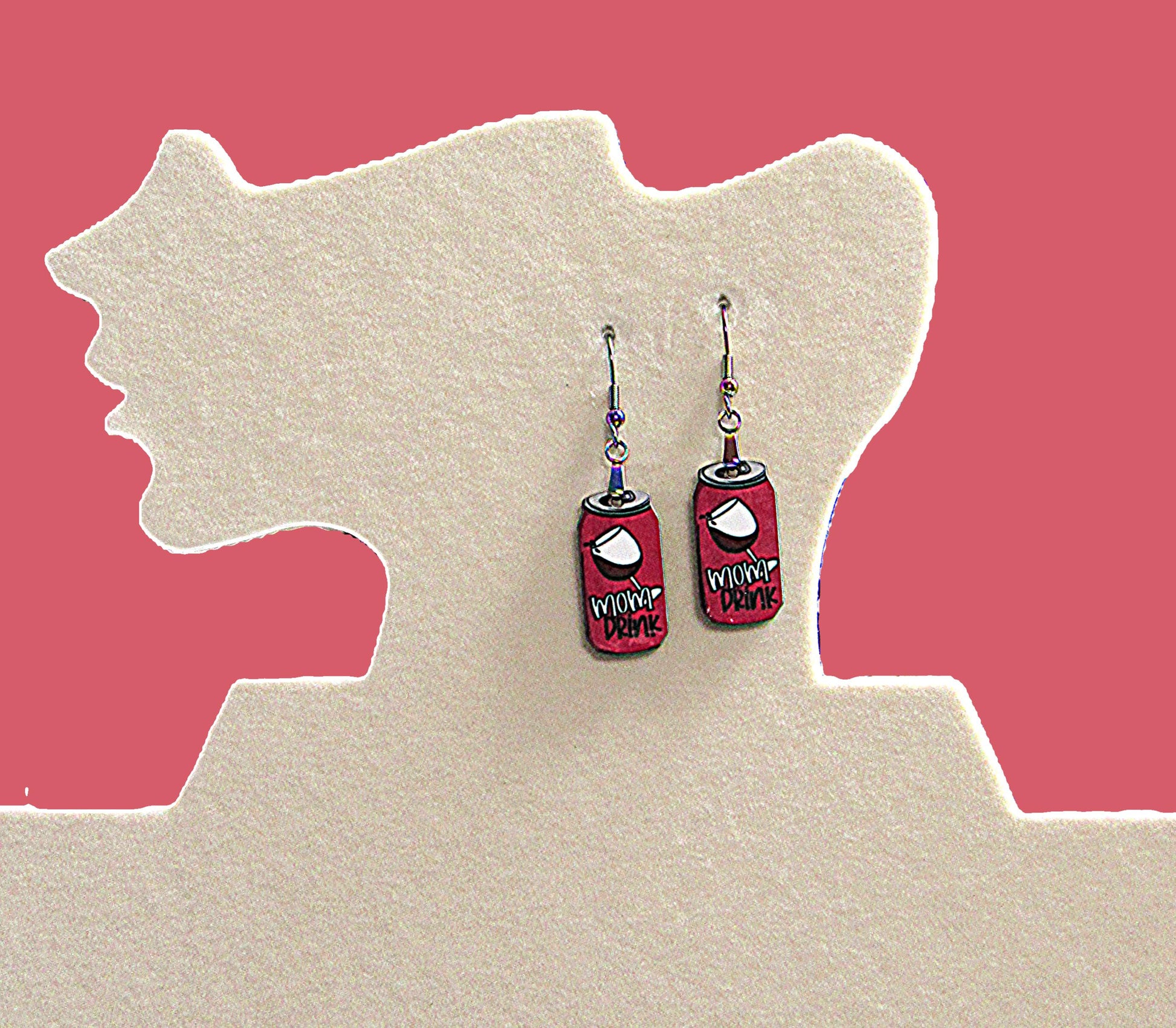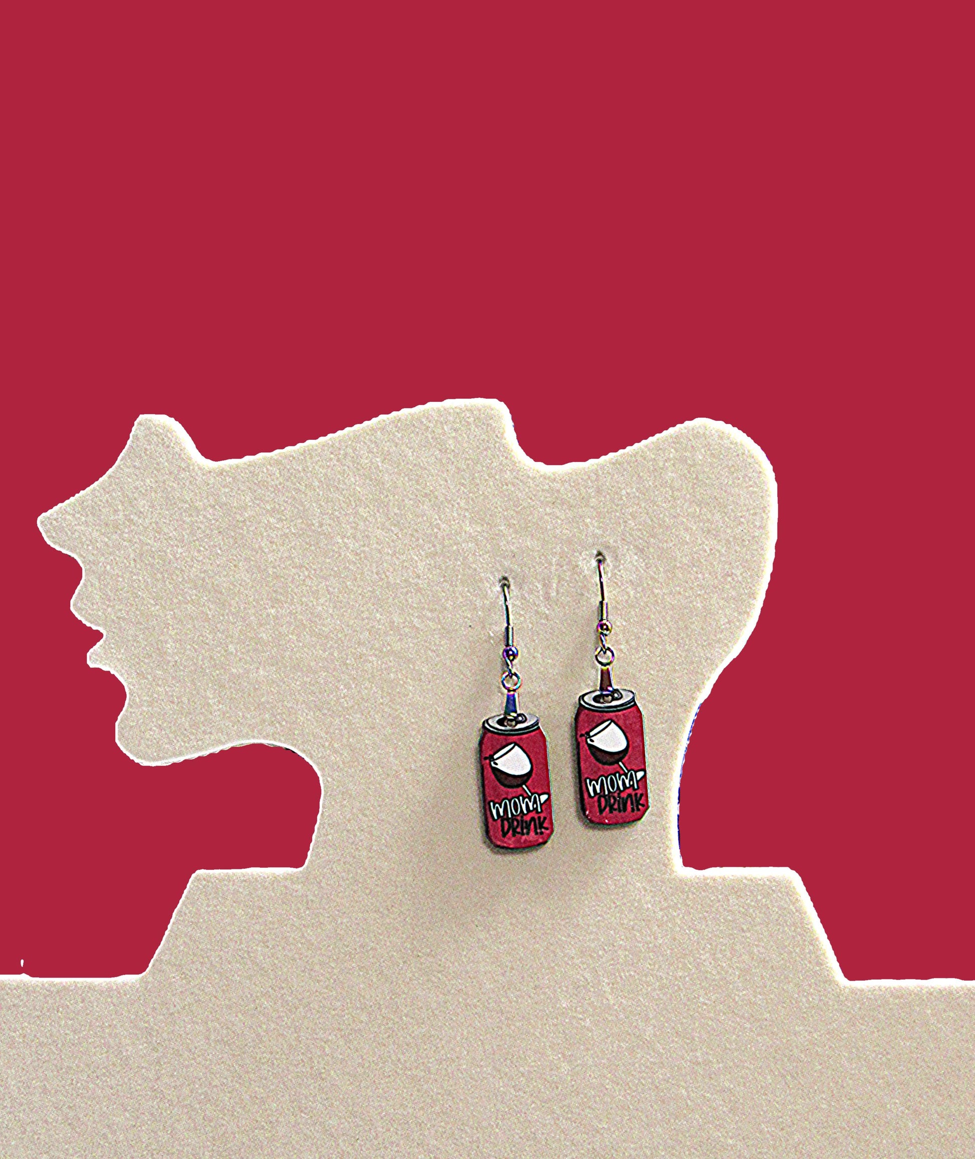 These playful soda can-shaped earrings measure 1 inch in both base and total length, crafted from durable MDF and featuring hypoallergenic wire for comfortable wear. Perfect for adding a quirky pop of fun to any outfit!
