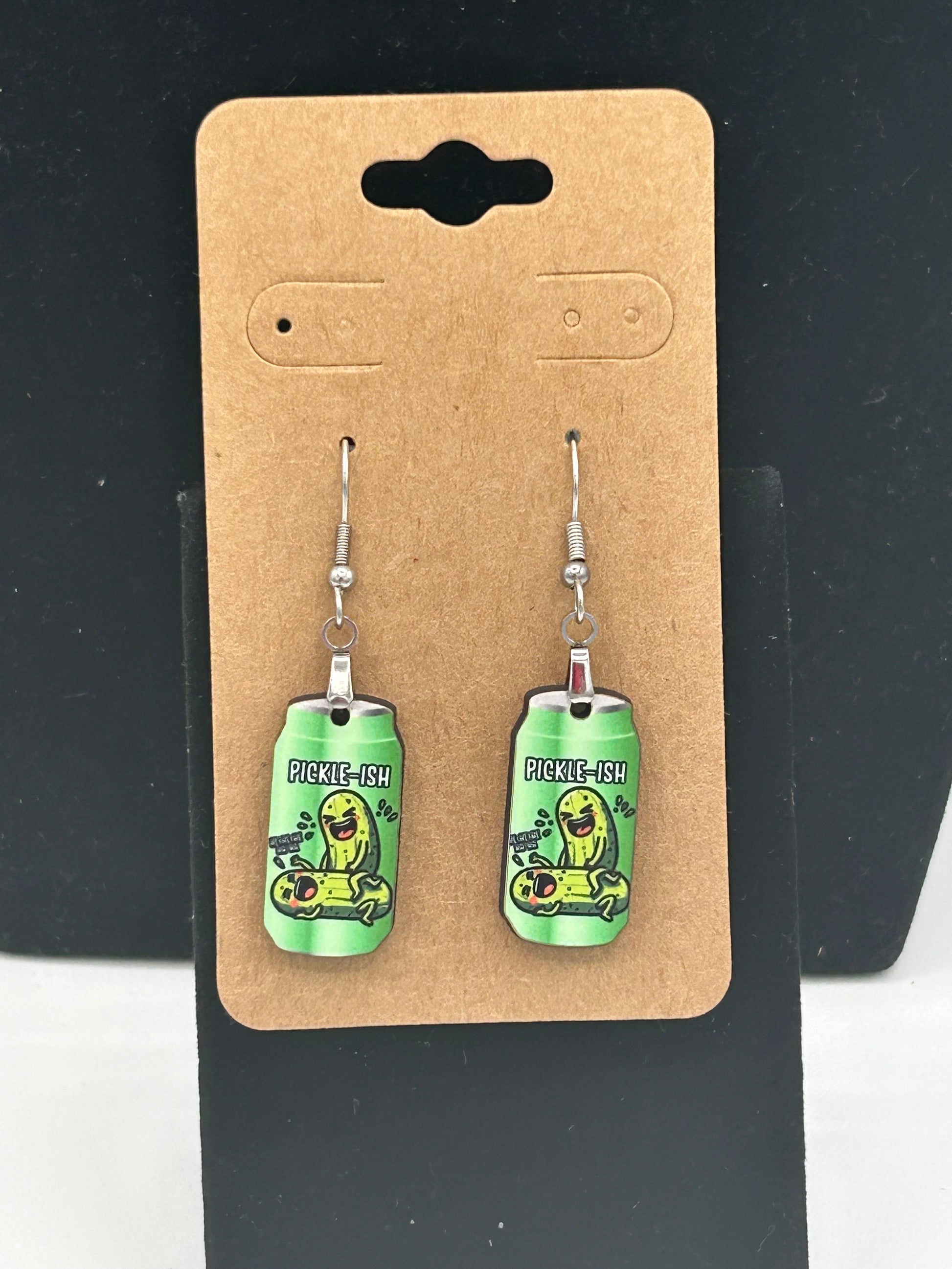 Elevate your style with these trendy 1-inch sublimated earrings shaped like soda cans. Add a fun and unique touch to your look with these eye-catching accessories. 2 inch total length.
