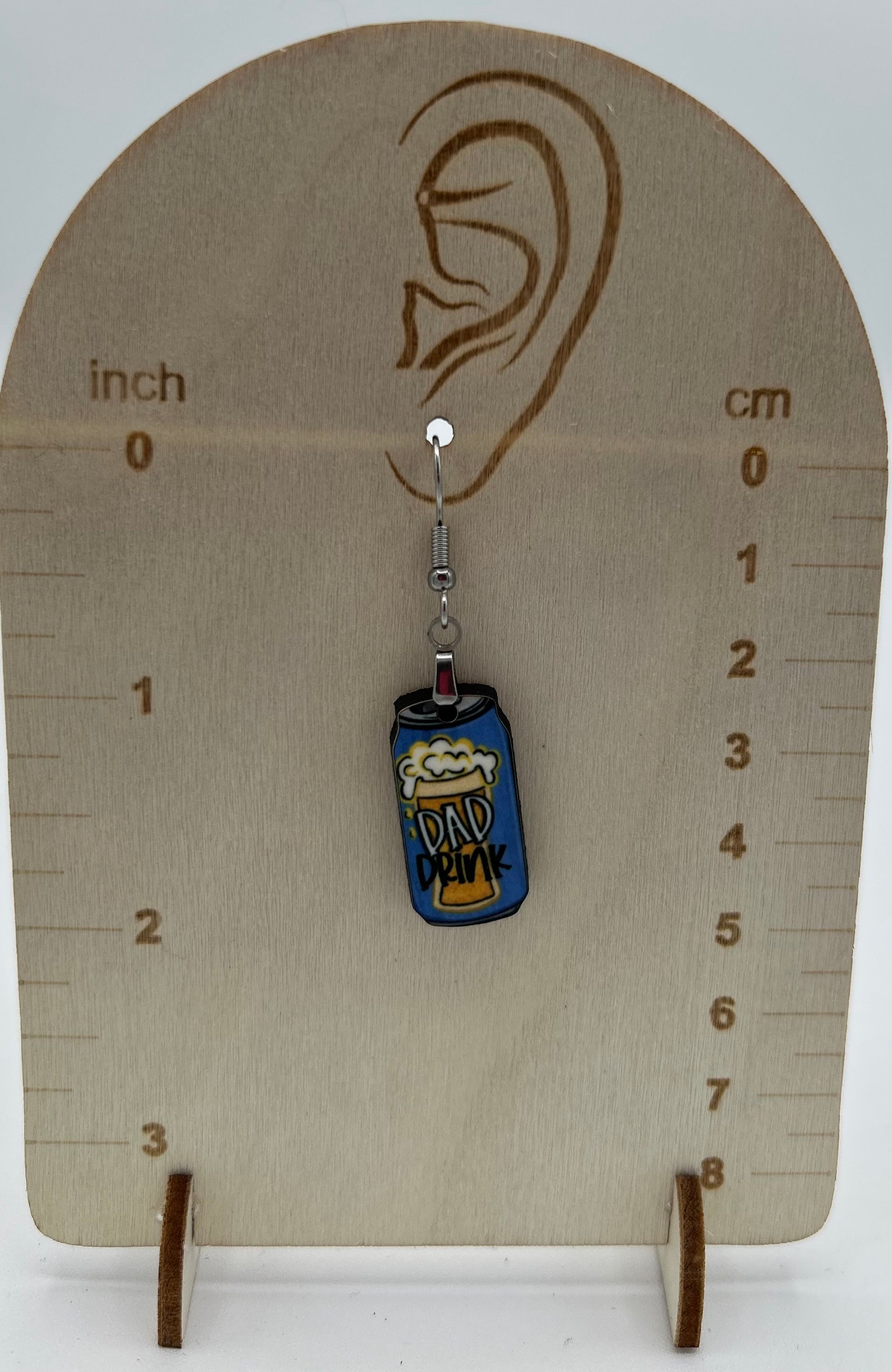 These playful soda can-shaped earrings measure 1 inch in both base and total length, crafted from lightweight MDF for comfortable wear. Featuring hypoallergenic wire, they’re perfect for sensitive ears and add a fun, quirky touch to any outfit.