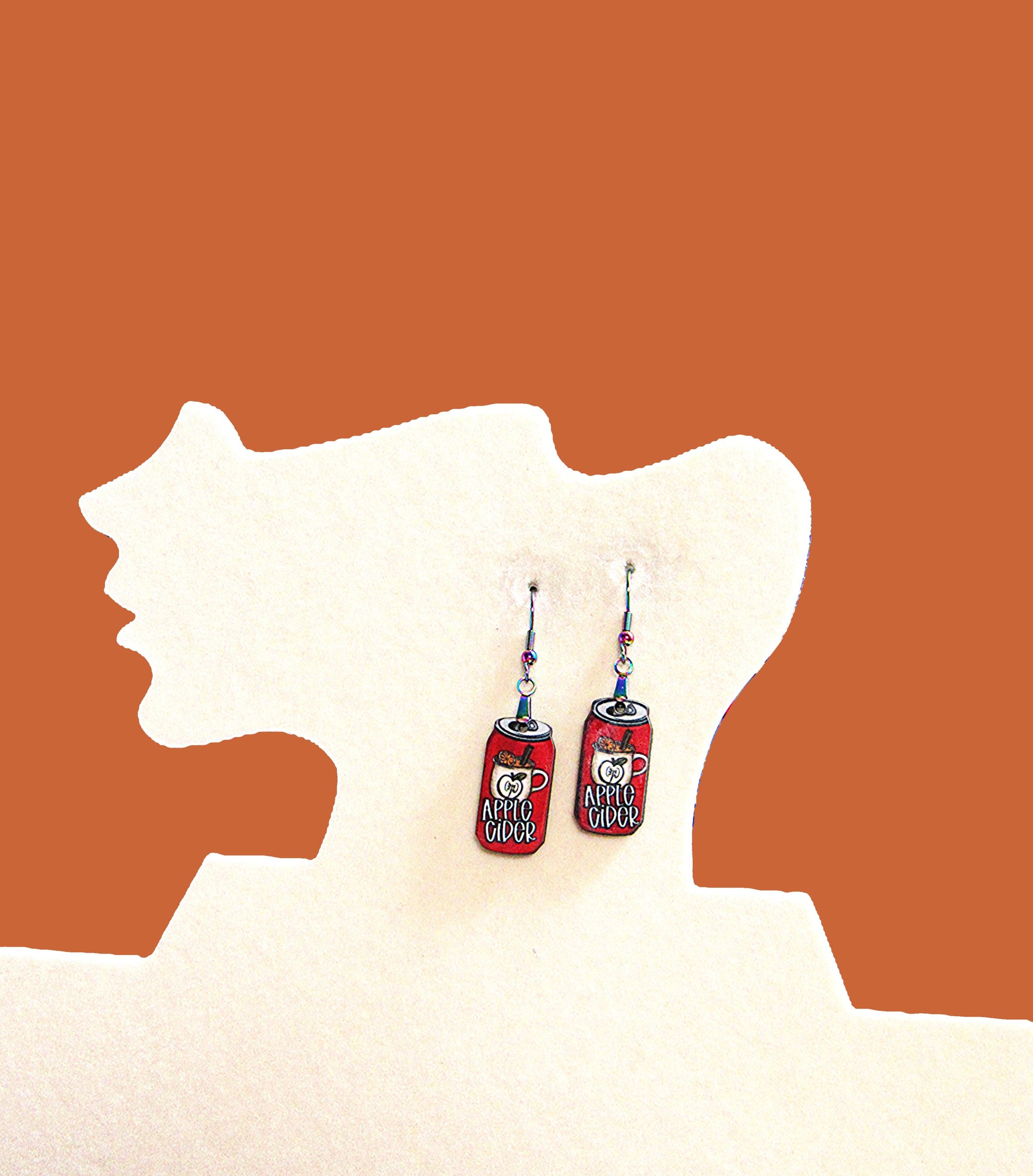 These playful soda can-shaped earrings measure 1 inch at the base and feature a total length perfect for a fun, lightweight accessory. Crafted from durable MDF and hung on hypoallergenic wire, they’re comfortable for all-day wear without irritation. Add a quirky pop to your style with these unique, eye-catching earrings!