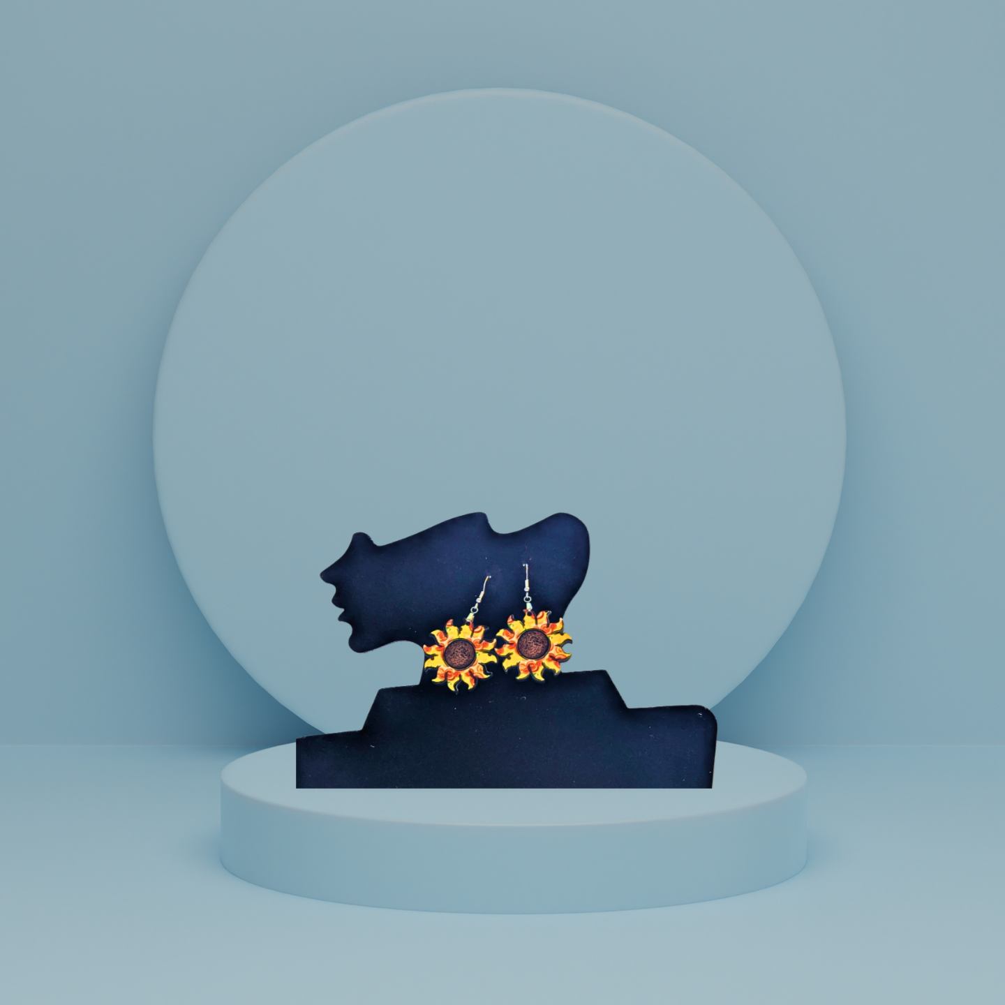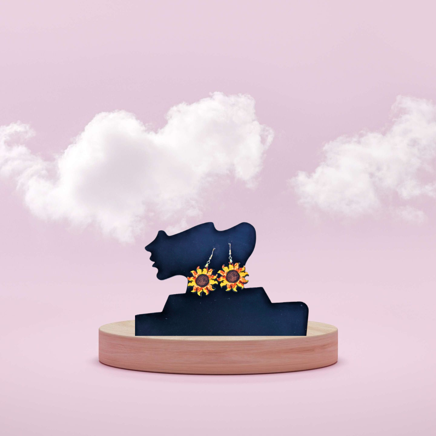 Bring a burst of floral fun to your style with these sun-shaped earrings adorned with a vibrant red floral print. Made from lightweight 1.5-inch MDF and measuring 2.5 inches in total length, they feature vivid sublimation on one side. The hypoallergenic wire keeps your ears comfy, making these earrings a playful and cheerful addition to any outfit.
