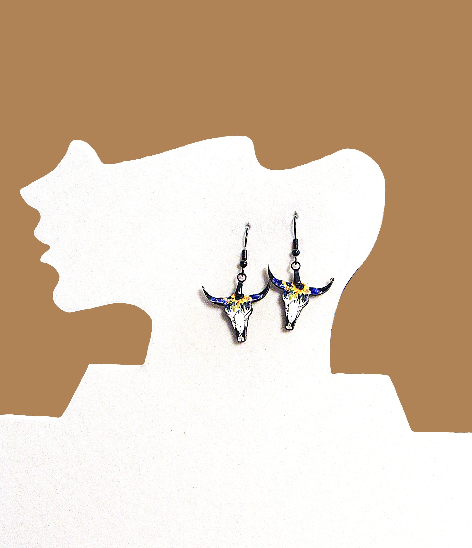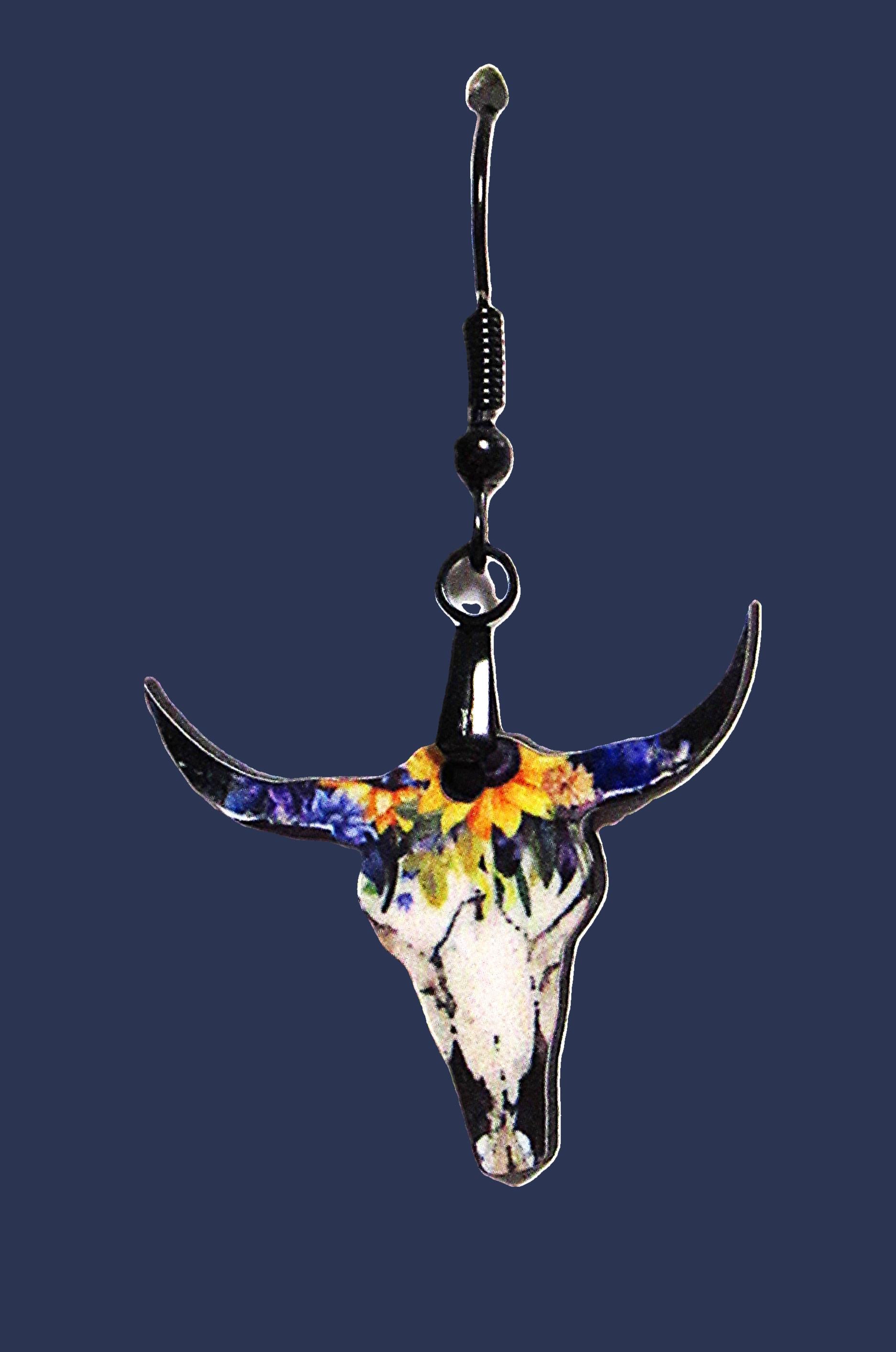Steer Skull Shaped Sublimated Earrings 1 inch
