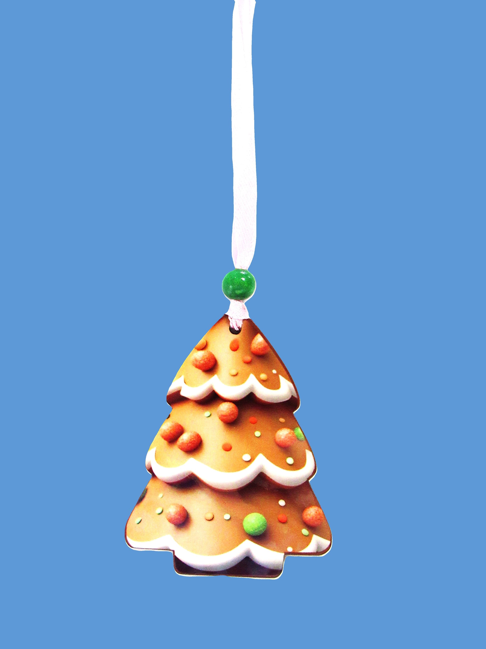 Add festive charm to your holiday decor with this playful tree-shaped ornament. Crafted from durable MDF, it measures 2 x 3.5 inches and features a vibrant gingerbread-themed design sublimated on one side. Completed with a cheerful pink ribbon and a wooden bead, it’s ready to hang anywhere and spread seasonal joy.