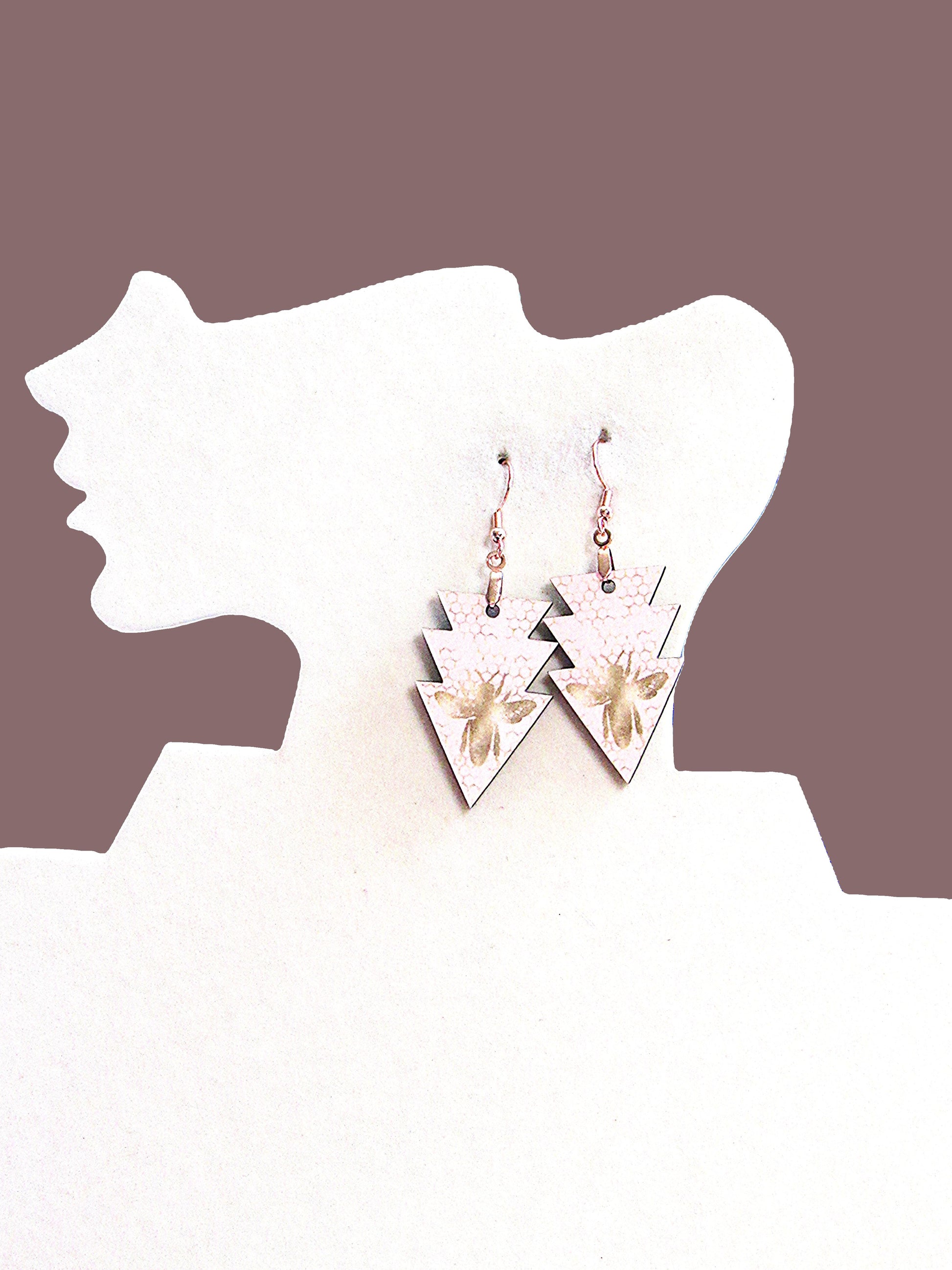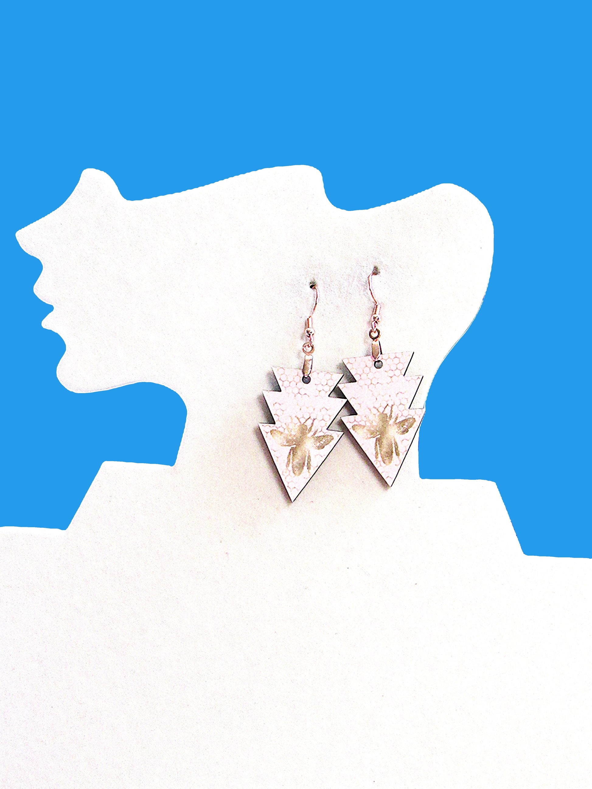 These playful triple arrow-shaped earrings bring a buzz-worthy touch to your look with their charming bee theme. Crafted from lightweight MDF and featuring hypoallergenic wire, they offer comfort and style all day long. Measuring 1.5 inches at the base and 2.5 inches in total length, they’re the perfect size to make a fun statement without overwhelming your outfit.