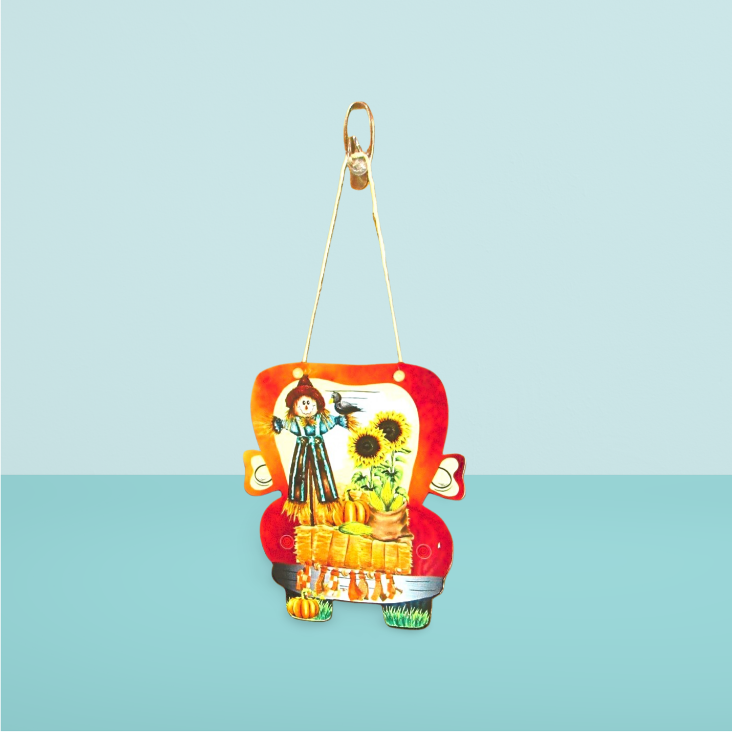 Brighten your fall entrance with this playful truck-shaped door hanger featuring a cheerful scarecrow design. Made from sturdy MDF and sized at 8 x 9 inches, it’s sublimated on one side for lasting color and detail. A natural jute rope completes the look, making it easy to hang and instantly add harvest fun to your home. Perfect for welcoming autumn with a smile!