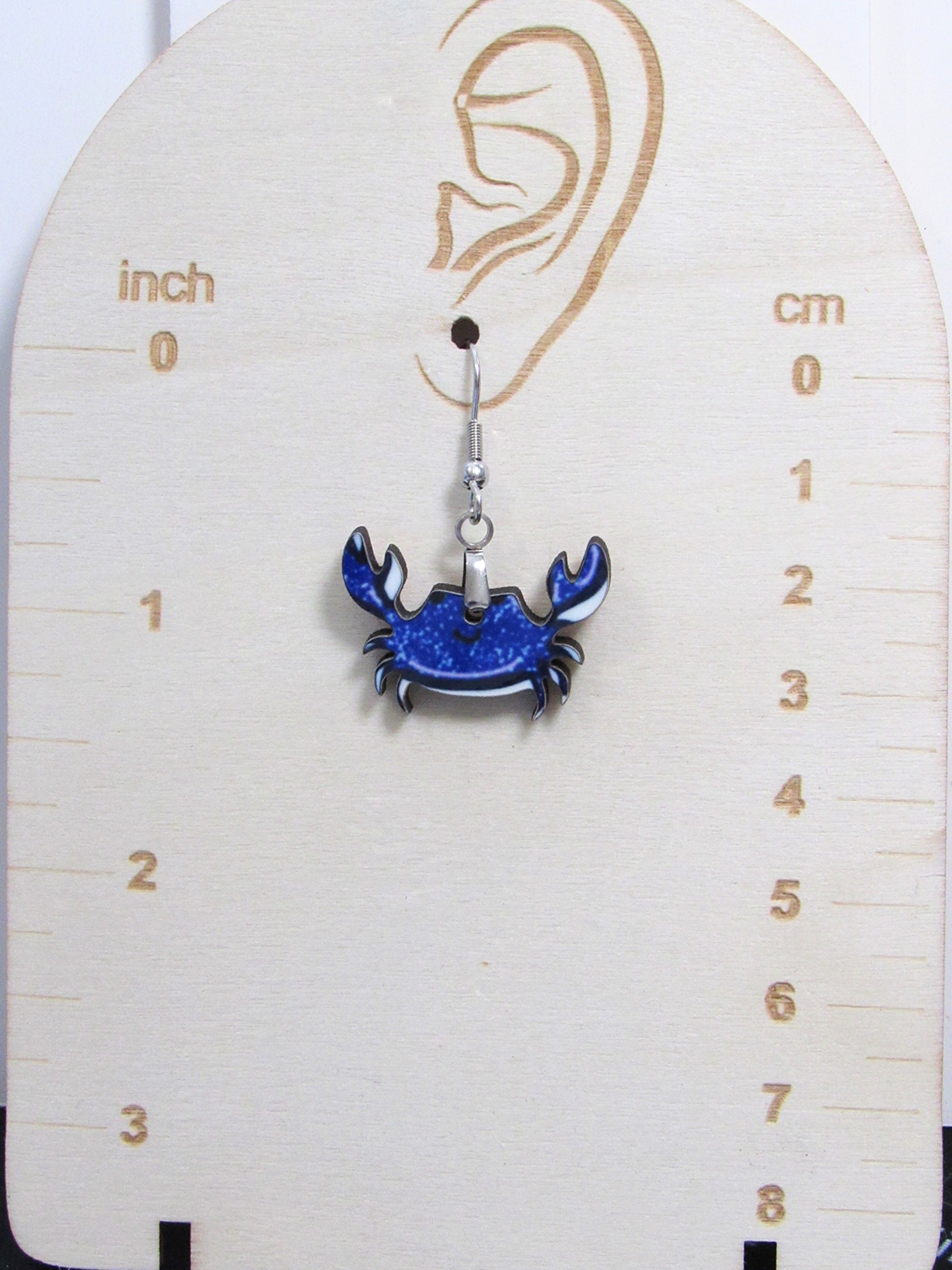 These playful crab-shaped earrings feature a 1-inch-wide MDF design with a total length of 1.5 inches. Lightweight and fun, they hang from hypoallergenic wire, perfect for sensitive ears. Add a splash of ocean-inspired charm to your look with these vibrant blue crab earrings.