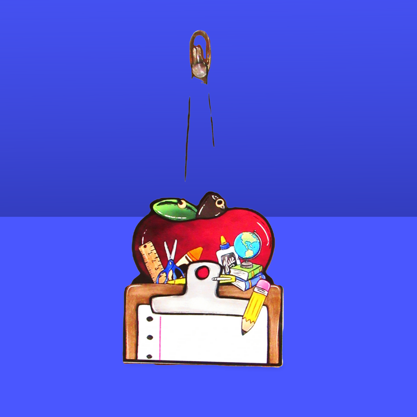 Add a fun touch to any classroom or kid’s room with this playful Apple with Sign Sublimated Door Hanger. Measuring 7.75 x 8 inches and made from durable MDF, it features a school-themed design printed on one side. Use dry erase markers to write your name or a special message, then hang it easily with its charming jute rope and wooden bead finish. Perfect for personalizing your space while keeping it cheerful and welcoming!