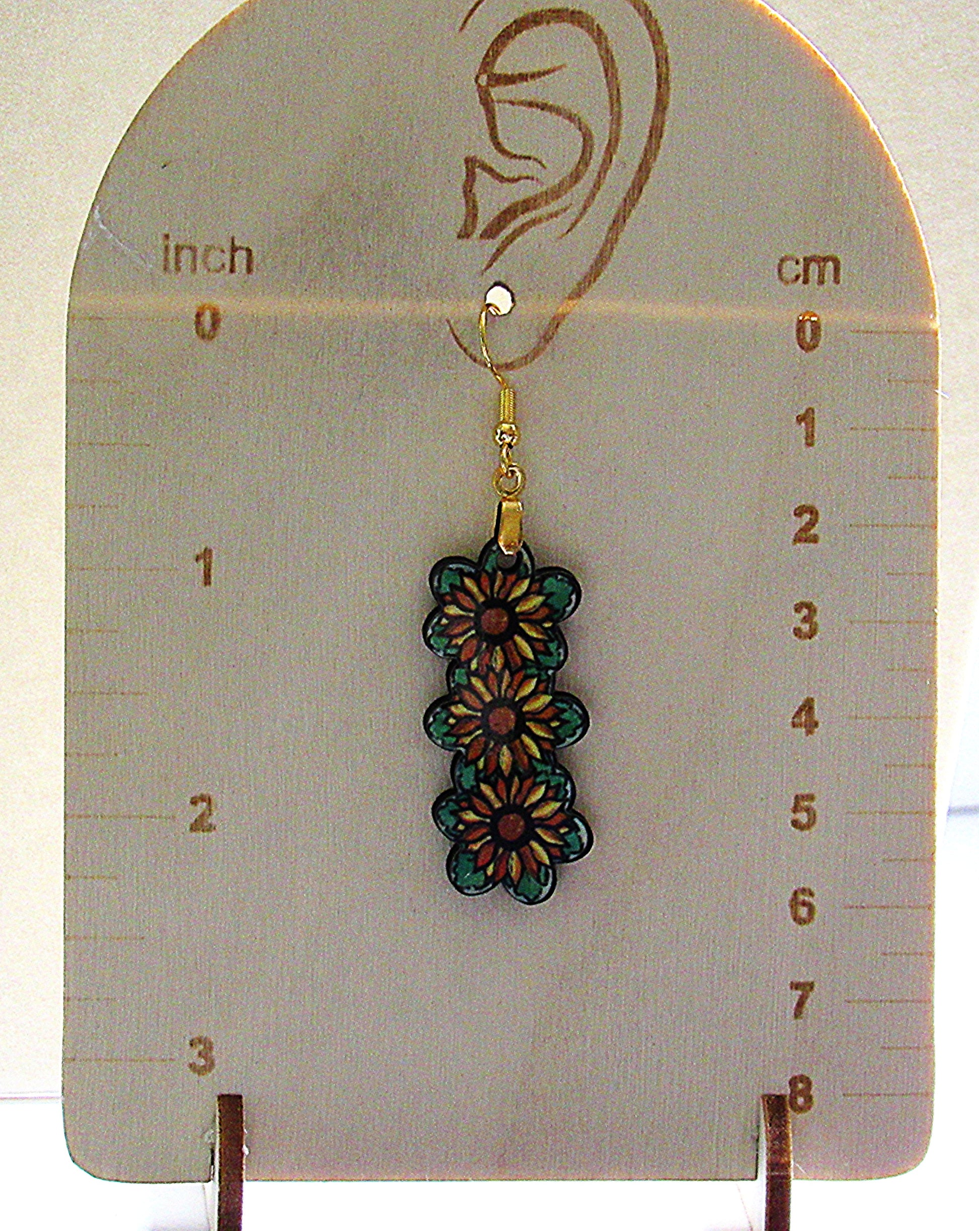 These playful triple flower-shaped earrings feature a sturdy 1.5-inch MDF base with a total length of 2.5 inches, making them a charming statement piece. Crafted with hypoallergenic wire, they’re perfect for sensitive ears, combining fun style with comfortable wear all day long.
