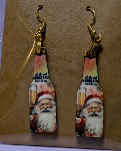 These Beer Bottle Shaped Sublimated Earrings feature a durable 1.5-inch MDF base with a total length of 2.5 inches, making them lightweight and comfortable to wear. Crafted with hypoallergenic wire, they are ideal for sensitive ears. Add a fun, unique touch to your style with these eye-catching earrings that combine quality materials and playful design.