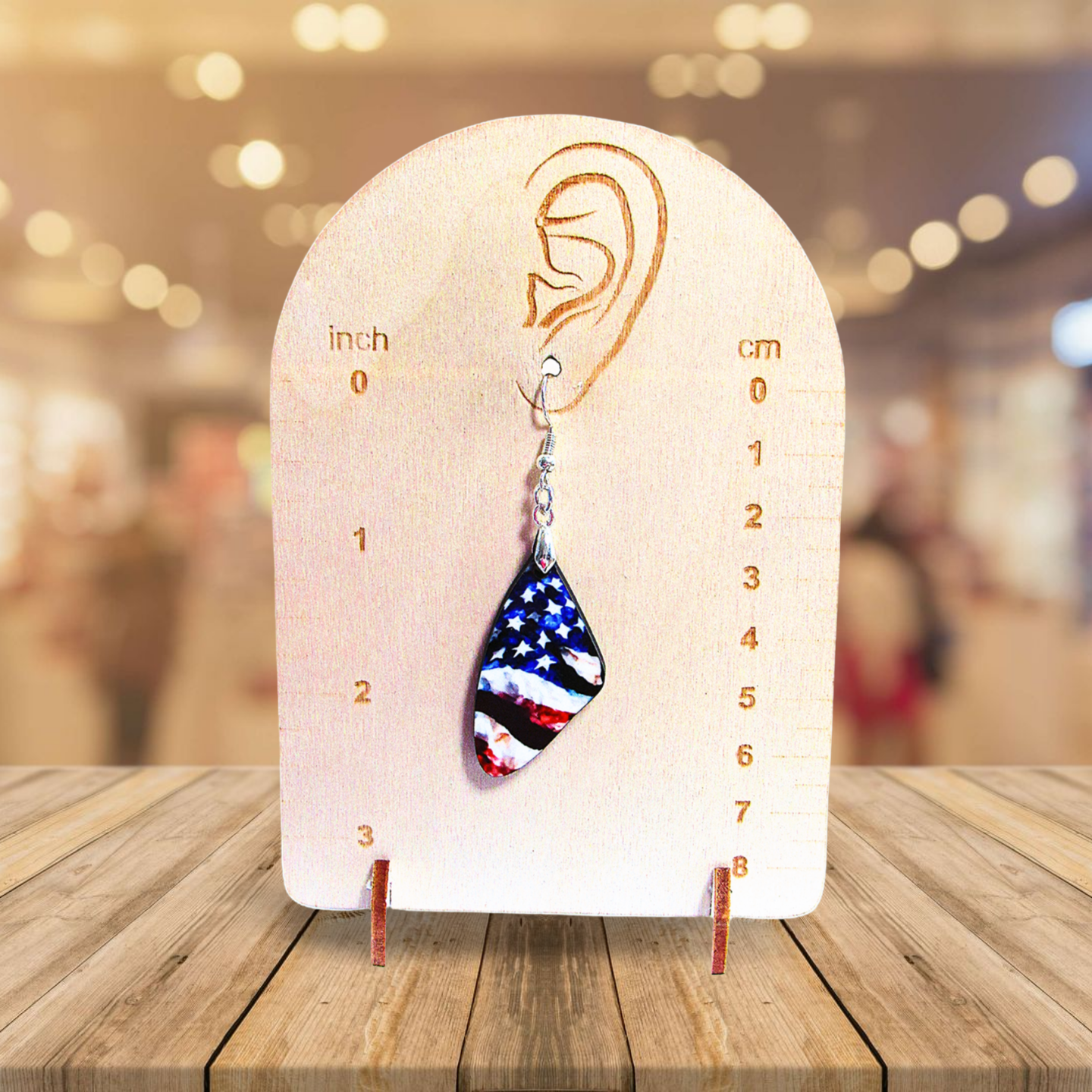 These wing-shaped earrings bring a playful flutter to your look with a 1.5-inch base and a total length of 2.5 inches. Crafted from lightweight MDF and featuring hypoallergenic wire, they’re comfortable for all-day wear. The vibrant flag-themed design adds a fun, spirited touch to any outfit.
