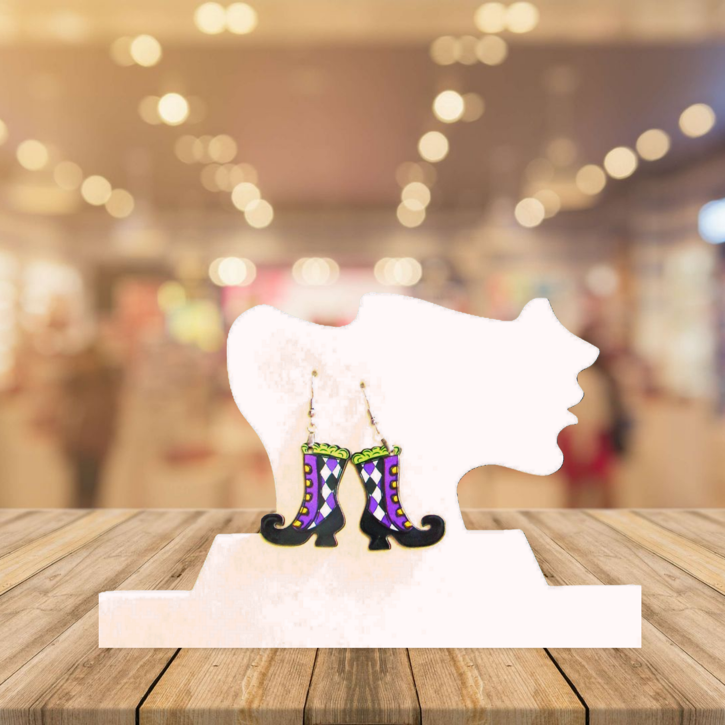 Step into the magic with these Witch Boot Shaped Sublimated Earrings! Measuring 1.5 inches wide and 2.5 inches long, they are lightweight MDF with hypoallergenic wire, perfect for sensitive ears. Show off your spooky style and channel mysterious vibes wherever you go with these bewitching accessories.