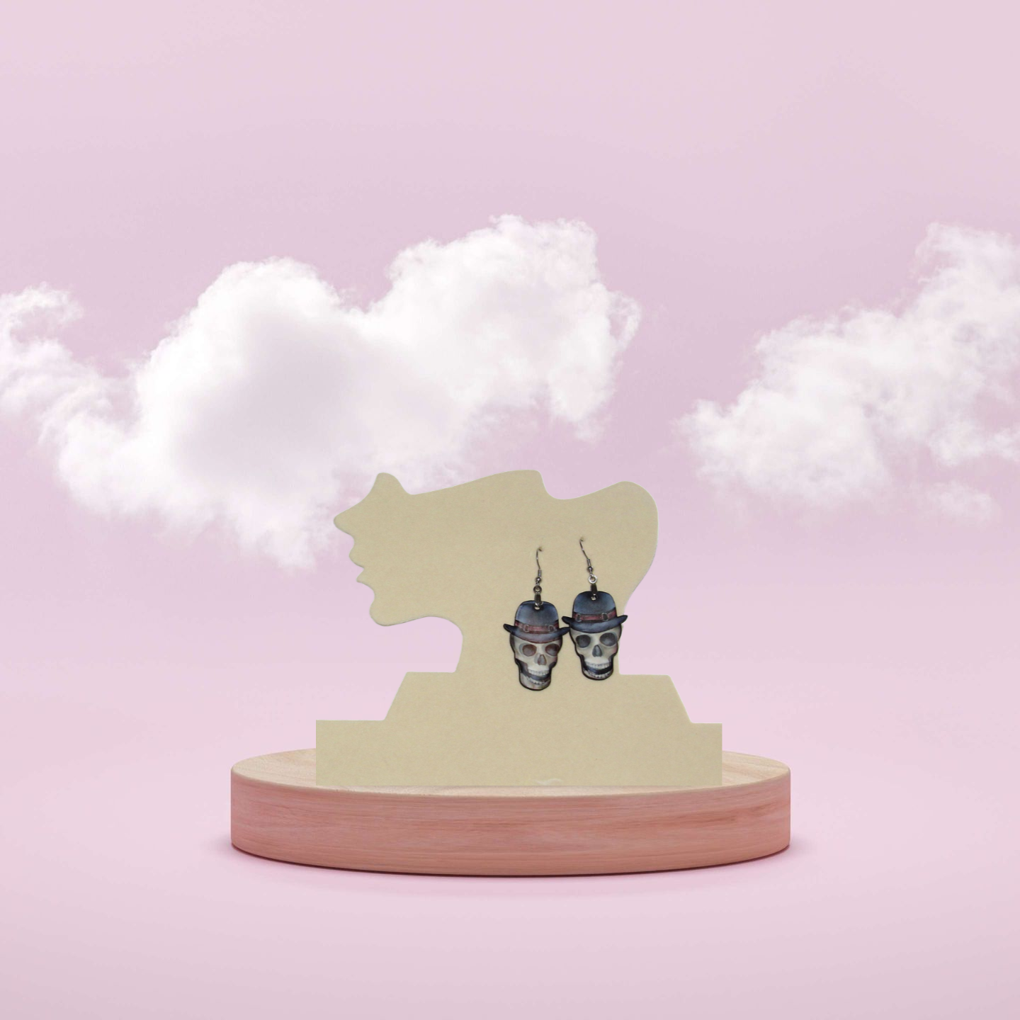 Skull with Hat Shaped Sublimated Earrings 1.5 inch