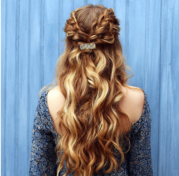 Add a playful touch to your hairstyle with this 2.5-inch rectangle barrette! Made from sturdy MDF and secured with a metal alligator clip, it features a pale blue background with multi flower print sublimated on one side. Perfect for keeping your hair neatly in place while adding a fun, colorful twist to your look.