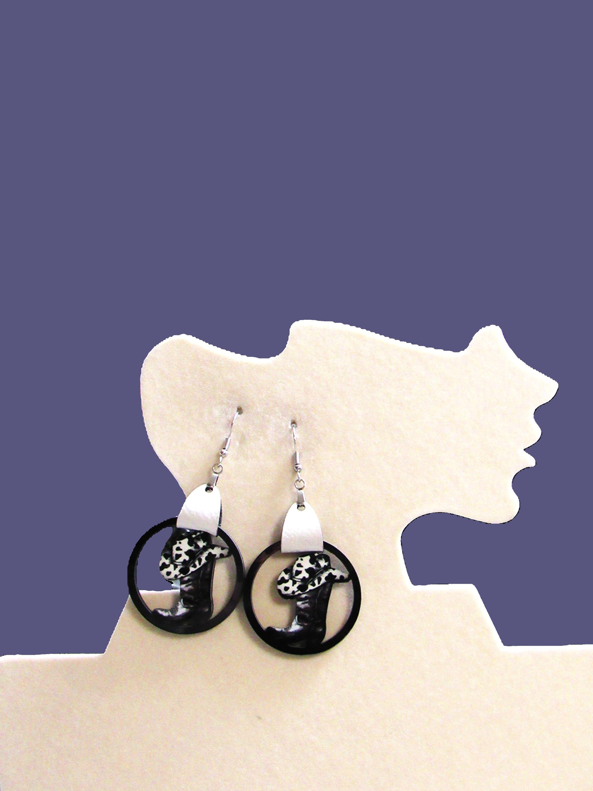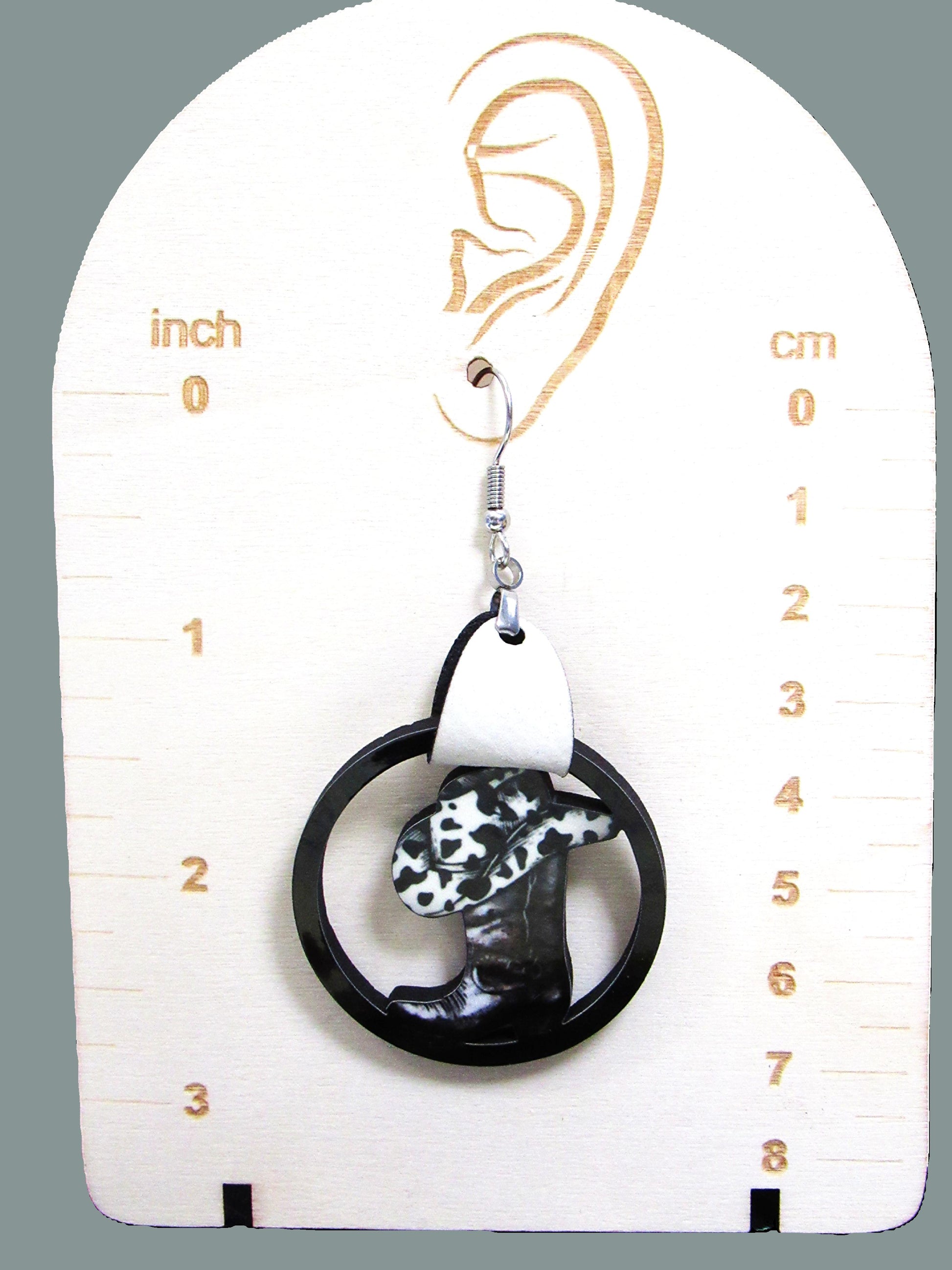 Round Cowboy Boot and Hat Shaped Sublimated Earring