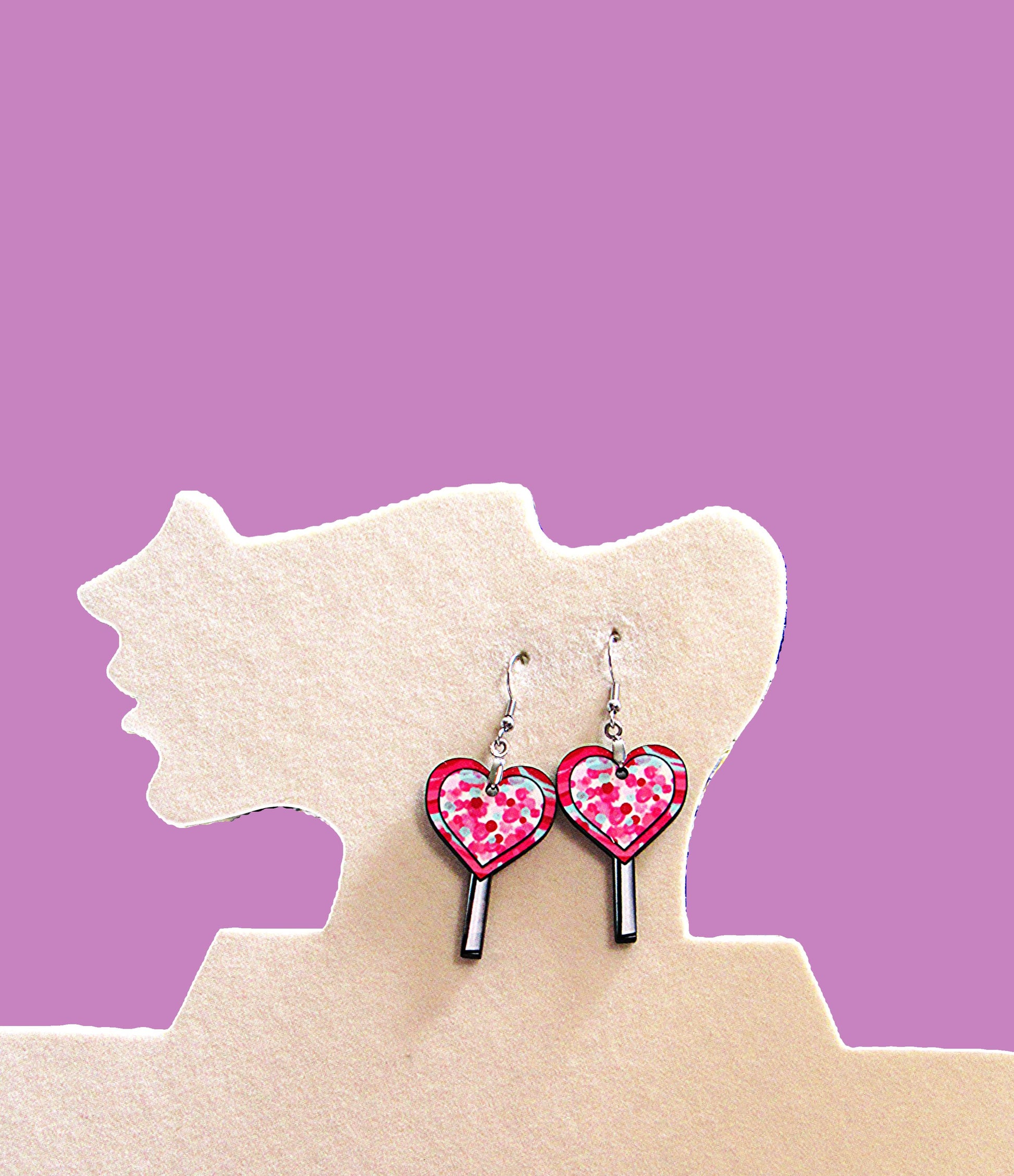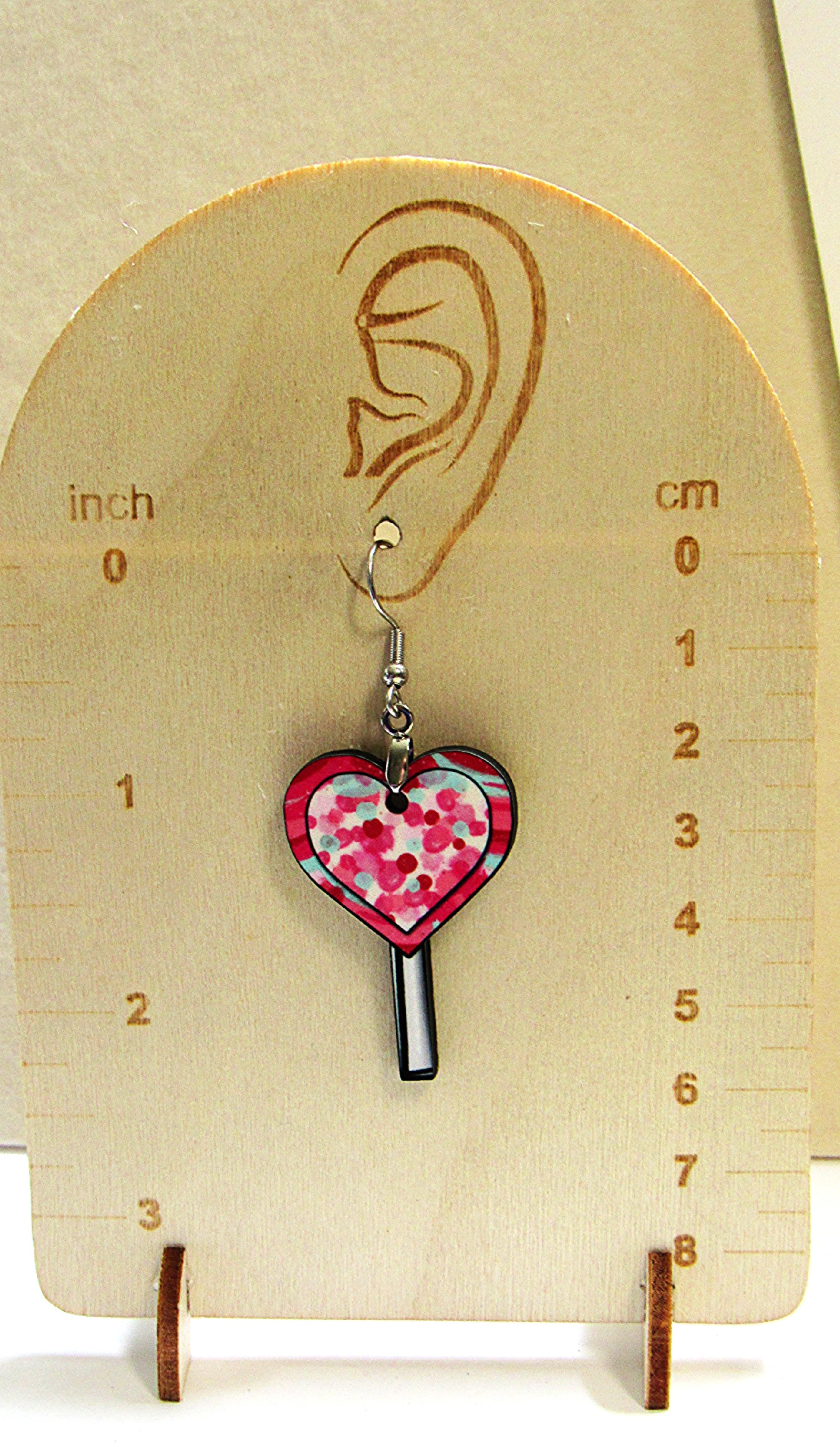 These Sucker Shaped Sublimated Earrings feature a 1.5-inch base and a total length of 2.5 inches, making them a bold yet comfortable accessory. Crafted with hypoallergenic wire, they are ideal for sensitive ears, ensuring all-day wear without irritation. Add a playful and unique touch to your look with these eye-catching earrings.